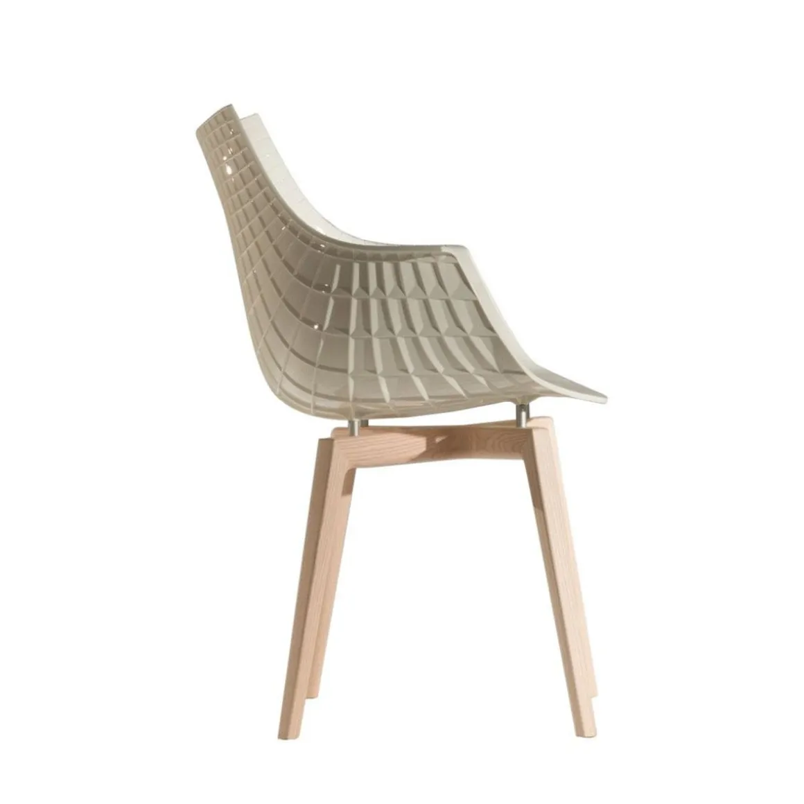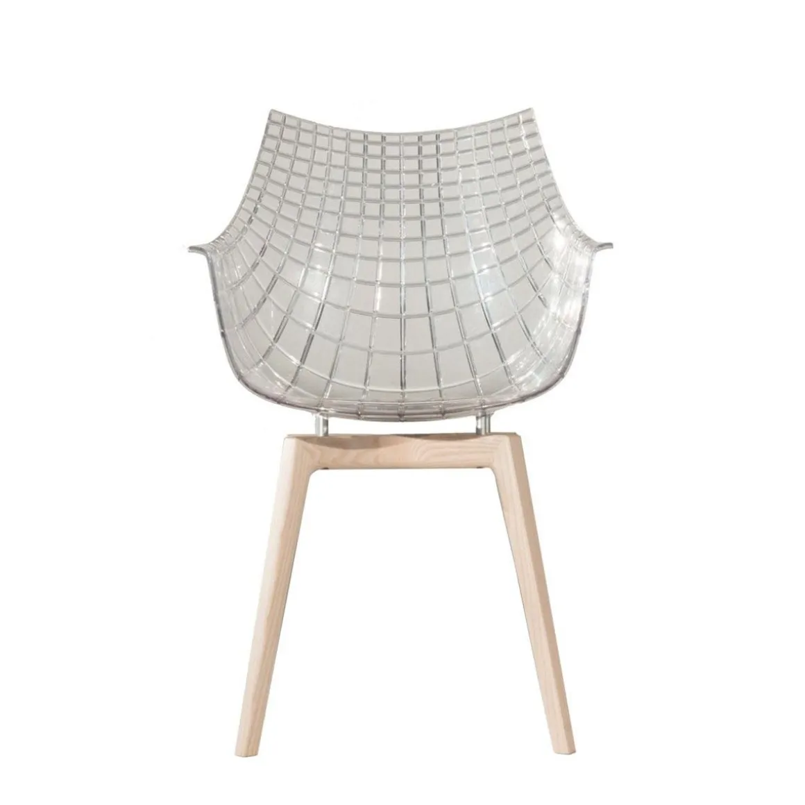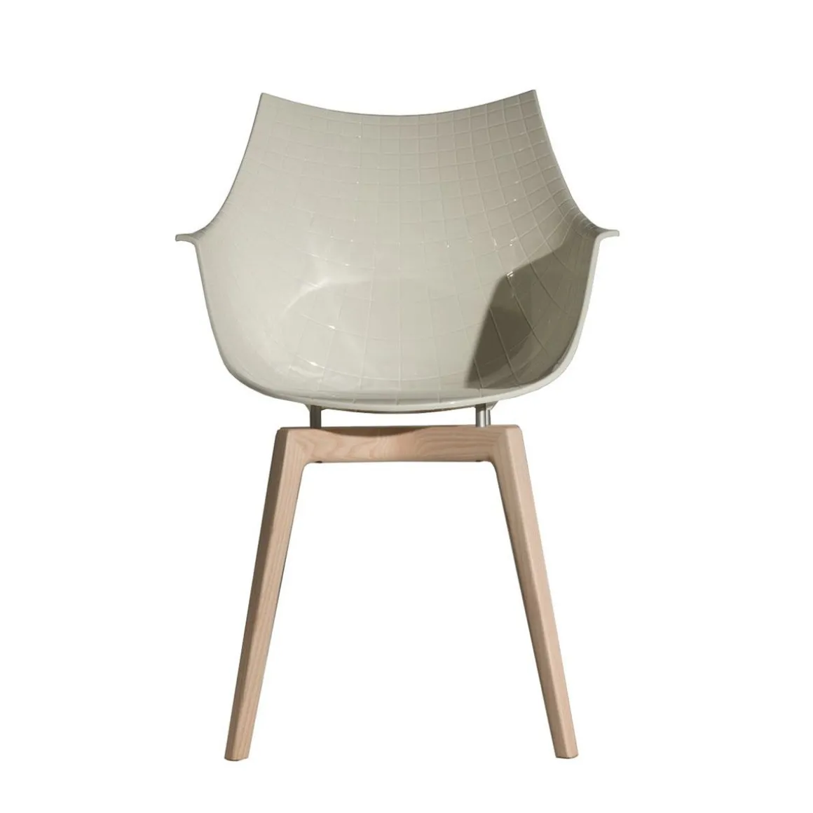 Meridiana, siège emblématique de la collection driade conçue par christophe pillet en 2004, puise son inspiration dans les lignes du diamant. fabriqué dans les variantes : chaise, fauteuil et tabouret avec coque en polycarbonate transparent, fumé, noir et blanc ou en cuir.