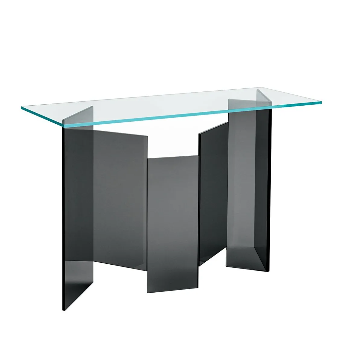 La console fait partie d’une collection de meubles caractérisée par une base en verre extra clair ou fumé. Les plateau de table placés sur la base sont dans les 3 nouvelles finitions polies en céramique+verre effet marbre. Noir désir, arabesque Calacatta, gris Orobico. Également disponible en version avec plateau en verre de différentes tailles.