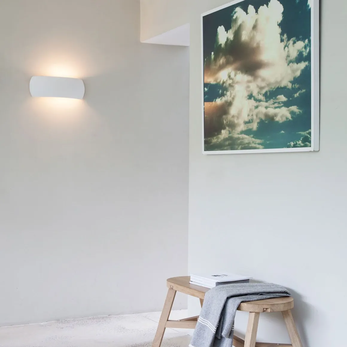 Applique murale d’intérieur Milo de Astro. De finition céramique blanche, ce produit peut être peint à l’aide d’une peinture émulsion de bonne qualité. Milo s’utilise avec une ampoule de culot E27.