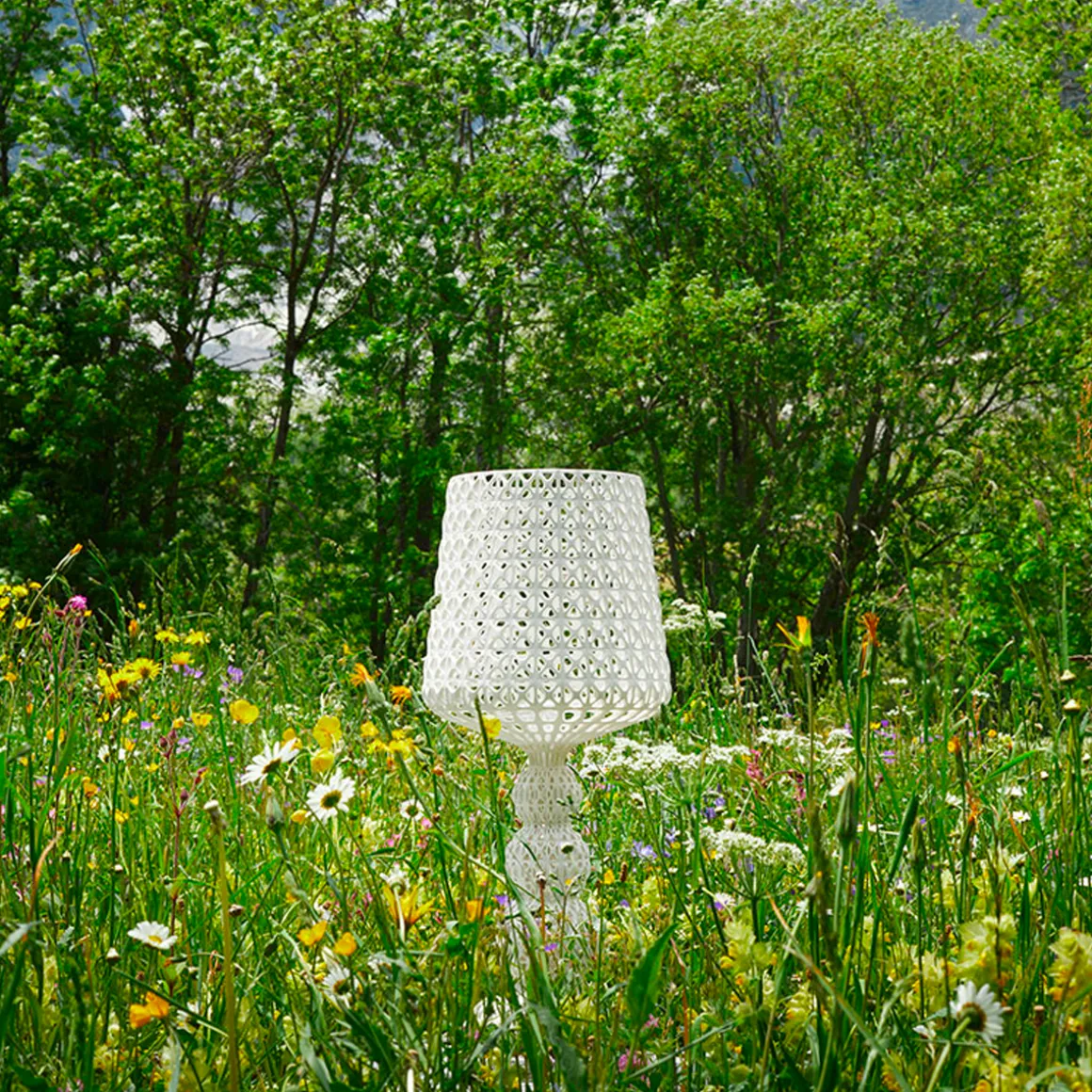 La famille de produits conserve la structure tissée particulière inspirée de la dentelle et recréée en adoptant une technologie d’injection très sophistiquée. Elle se distingue par une surface perforée à partir de laquelle la lumière est diffusée.