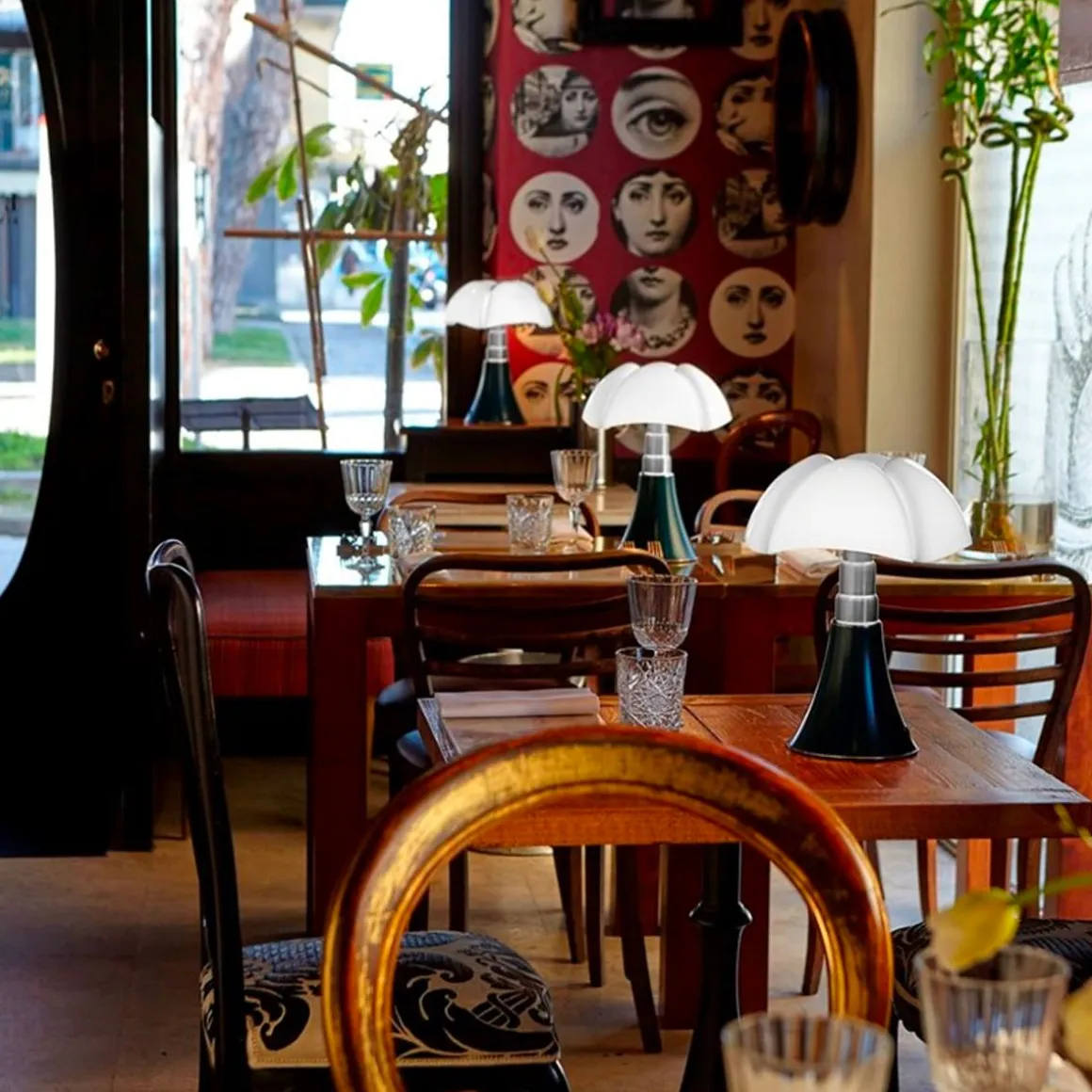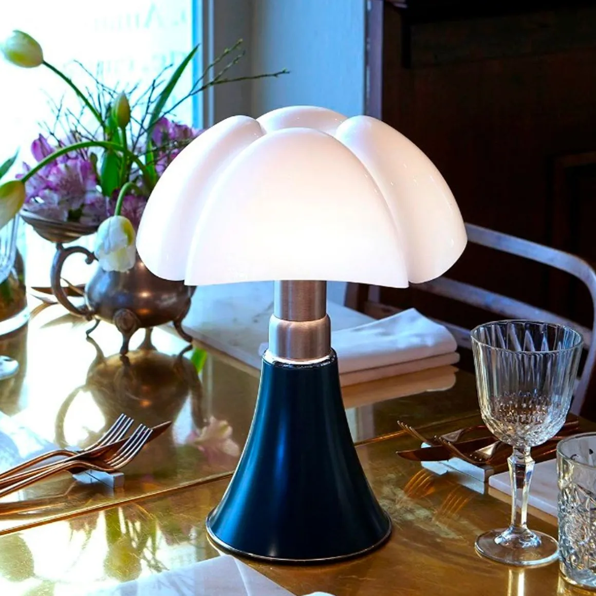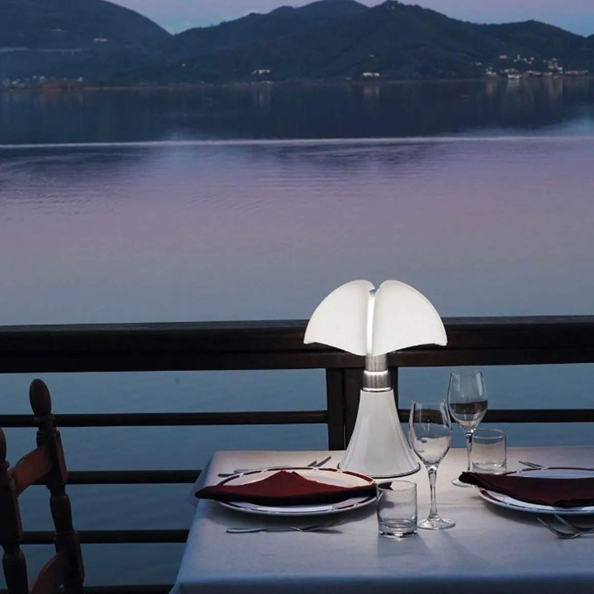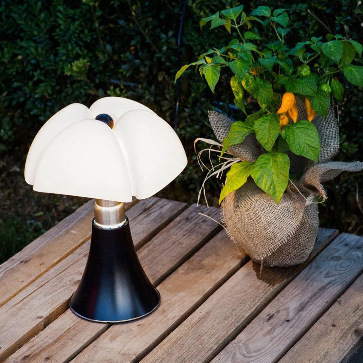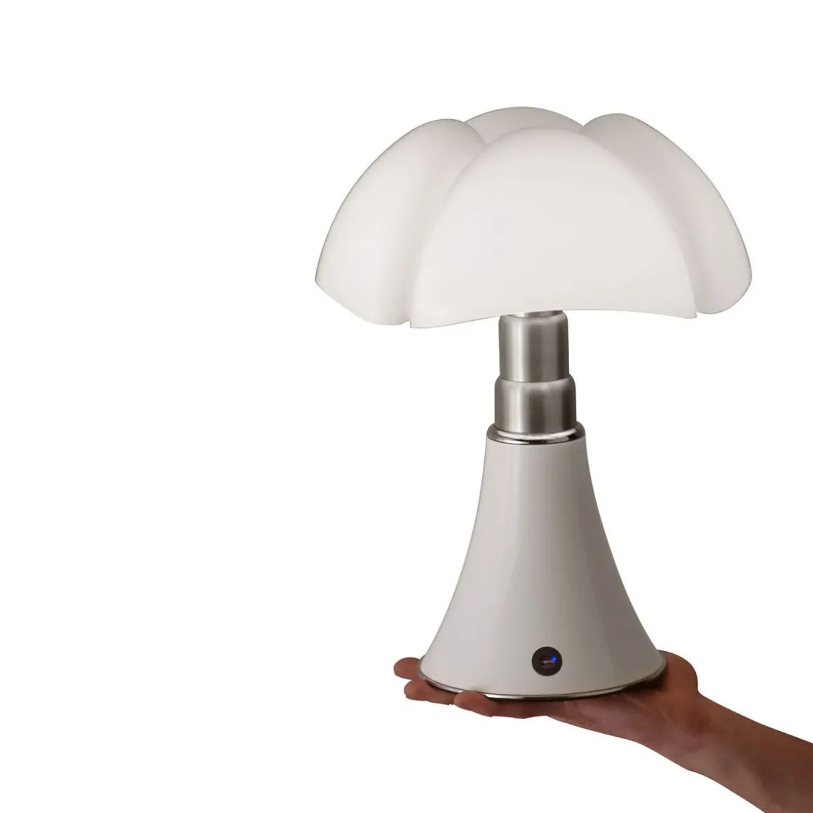 Grâce à la technologie LED la Mini Pipistrello est aujourd’hui disponible dans une version portable, dimmable et sans fil avec une batterie rechargeable en 6H et avec un capteur tactile. La Mini Pipistrello, est prête pour être posée là où vous le souhaitez: à l’occasion d’un diner romantique, pour un rendez-vous sur la terrasse, elle représente le compagnon idéal pour tous ceux qui n’aiment pas les limites. Système sans fil, rechargeable (chargeur de batterie et batterie fournie) par l’intermédiaire d’une porte micro-USB/ type-C d’une durée de 6 heures. Lampe rechargeable par banques d’alimentations compatibles.