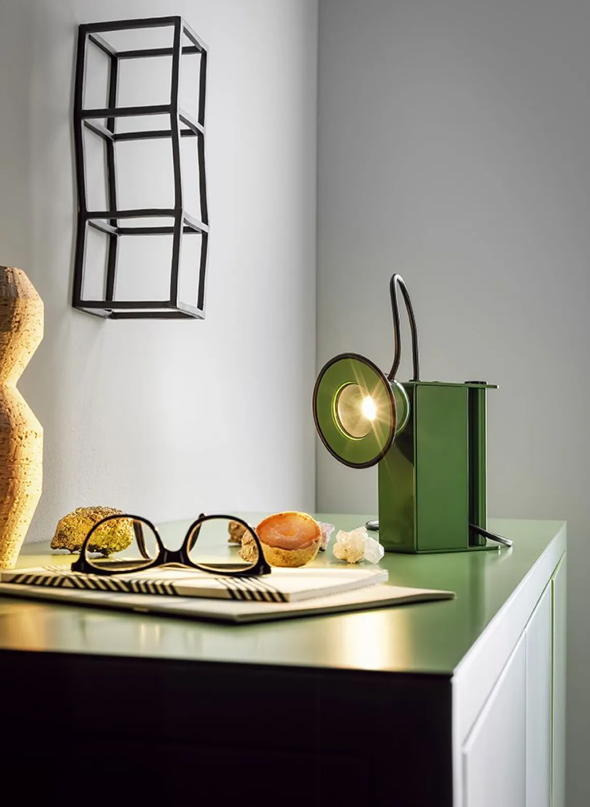 L’applique Minibox est composée d’un corps métallique et d’un œil lumineux irrévérencieux. L’accouplement magnétique de la tête permet d’orienter la lumière, ce qui la rend adaptée à chaque endroit.