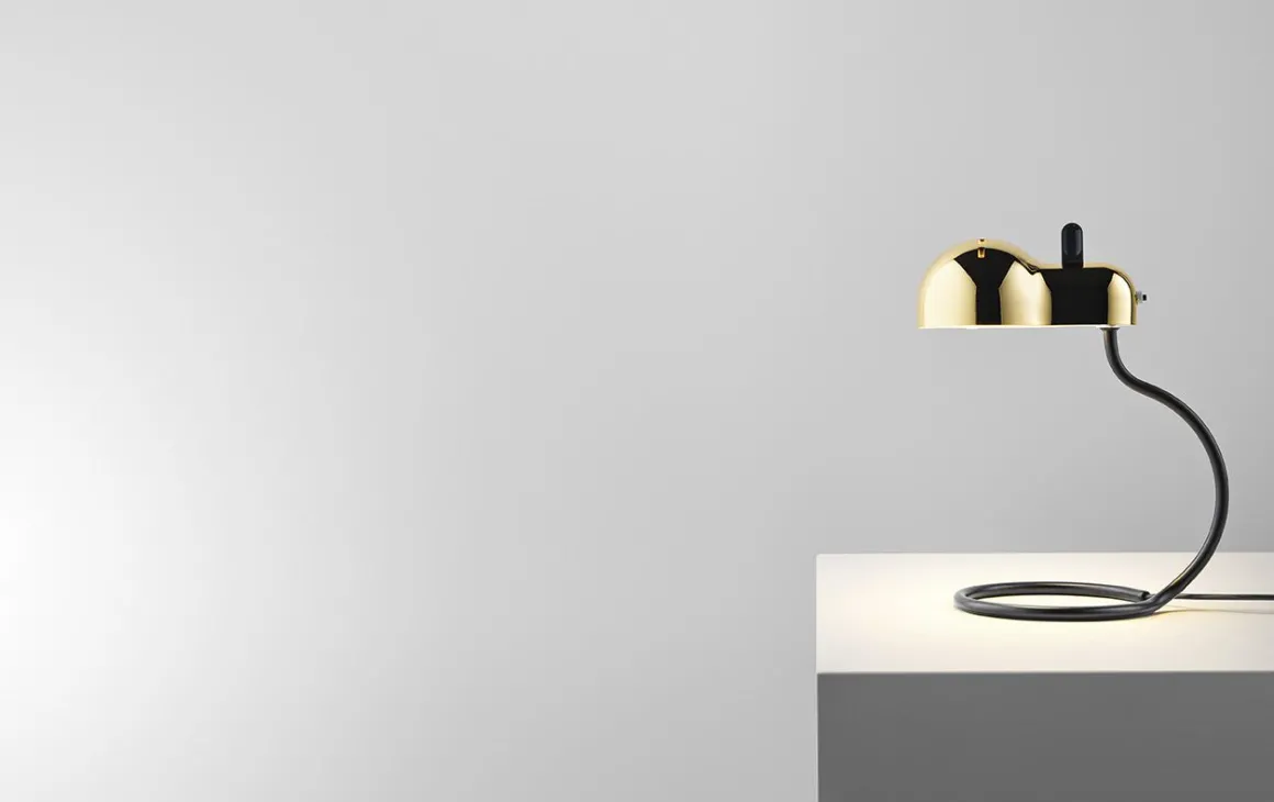 Minitopo est un fascinant objet d’inspiration automobile : les fentes de la coque rappellent les prises d’air des voitures de sport des années 1960, tandis que la forme de l’abat-jour correspond à l’enveloppe de l’ampoule classique E27 logée à l’intérieur, comme un corps sur le moteur sousjacent La forme qui en résulte fait penser à une souris, d’où le nom ironique. La lumière peut être librement dirigée par la poignée noire, la queue, placée sur le réflecteur.