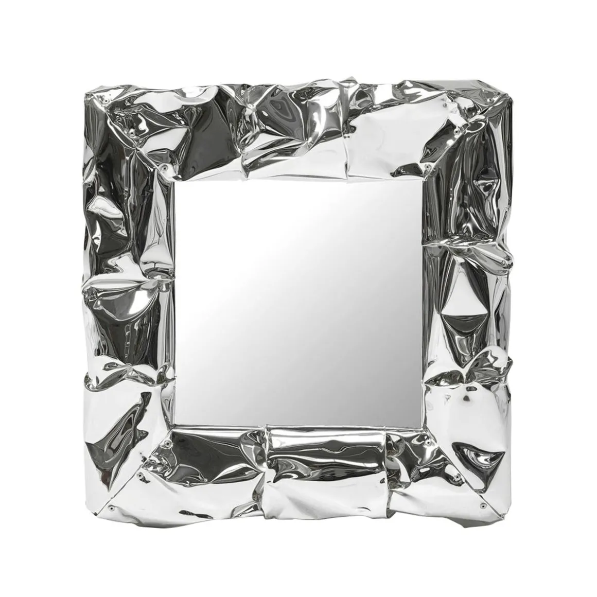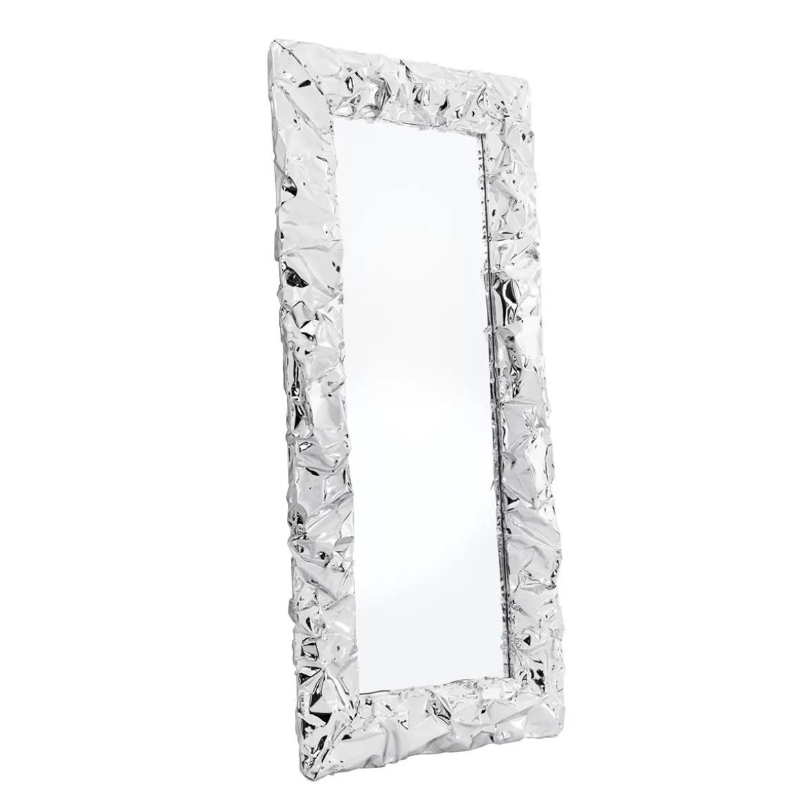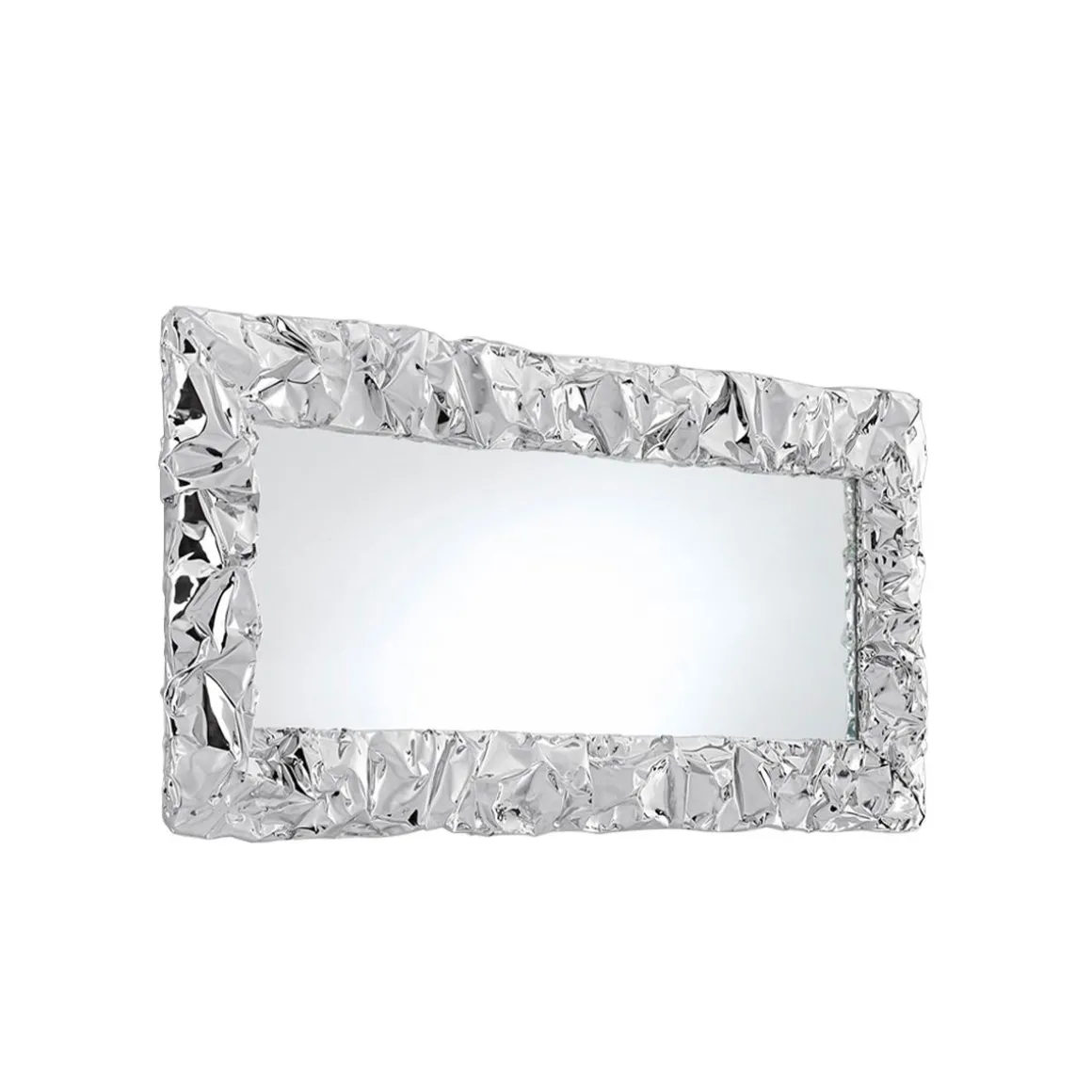 On a envie de toucher ce miroir, avec son cadre épais rappelant l’effet d’un papier froissé ou d’une feuille d’aluminium. Une surface irisée celle des miroirs Tab.u est si « émue » qu’elle semble douce et extrêmement malléable et qui, au toucher, se révèle pour ce qu’elle est un cadre rigide en aluminium résistant savamment modelé à la main.