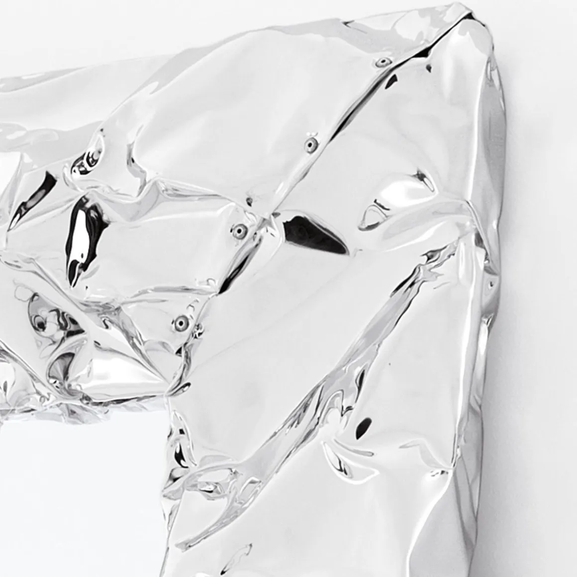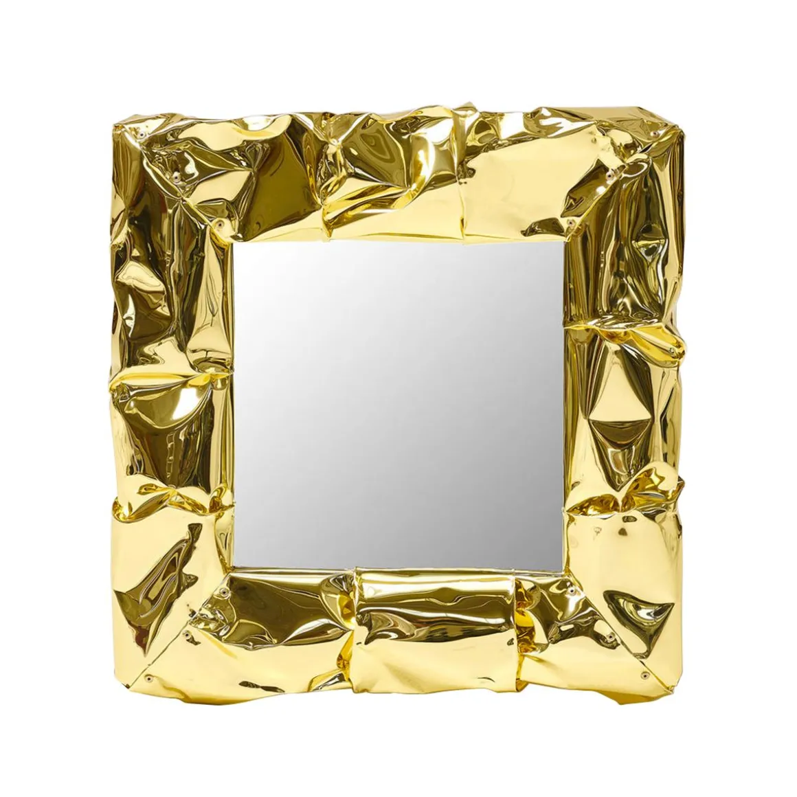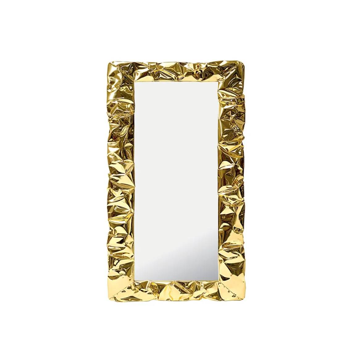 On a envie de toucher ce miroir, avec son cadre épais rappelant l’effet d’un papier froissé ou d’une feuille d’aluminium. Une surface irisée celle des miroirs Tab.u est si « émue » qu’elle semble douce et extrêmement malléable et qui, au toucher, se révèle pour ce qu’elle est un cadre rigide en aluminium résistant savamment modelé à la main.