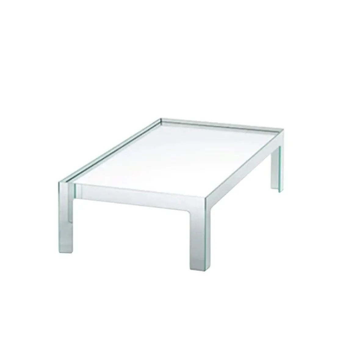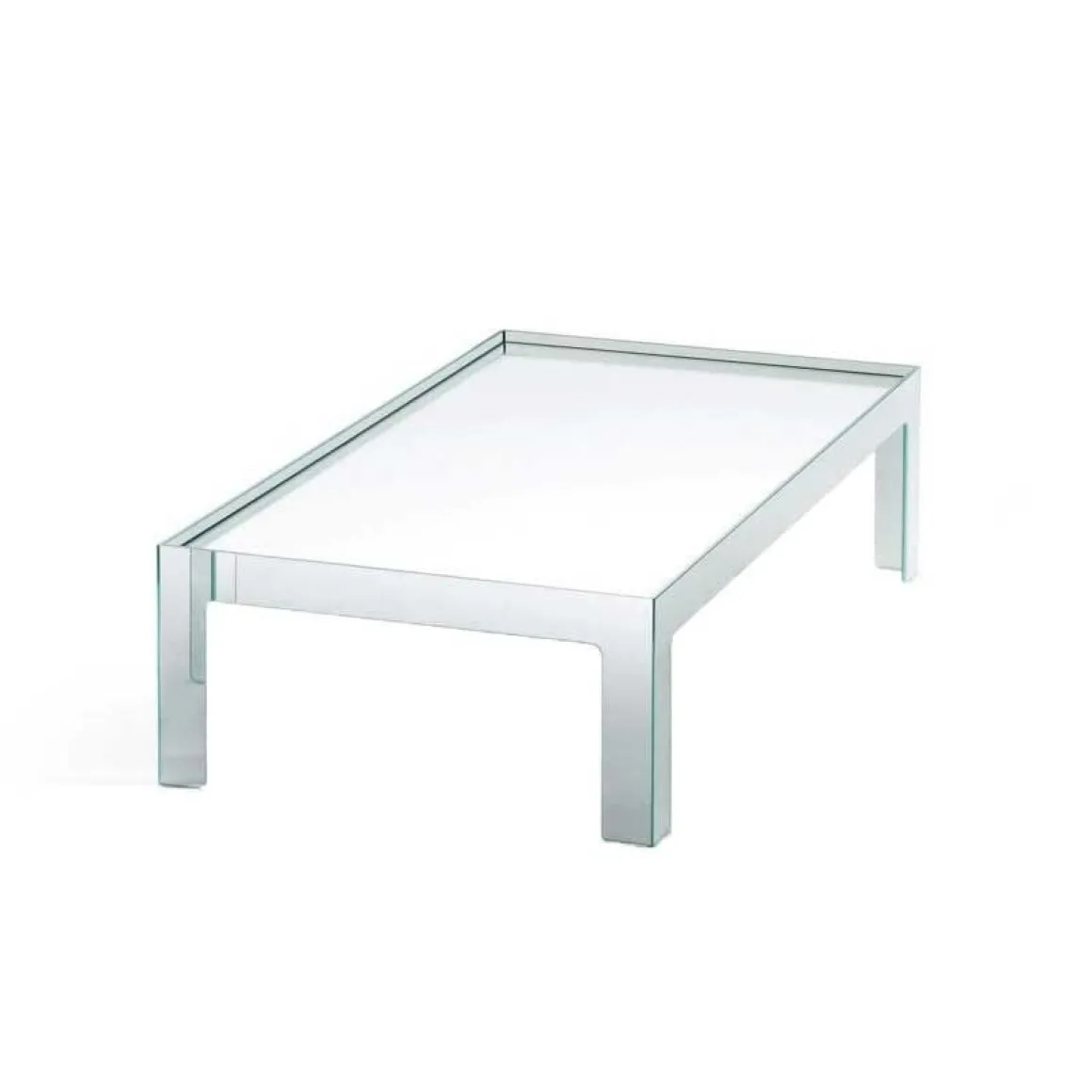 Dans les tables basses, le dessus du miroir repose plus bas dans le cadre de base, de manière à être contenu par un profil de dosseret.