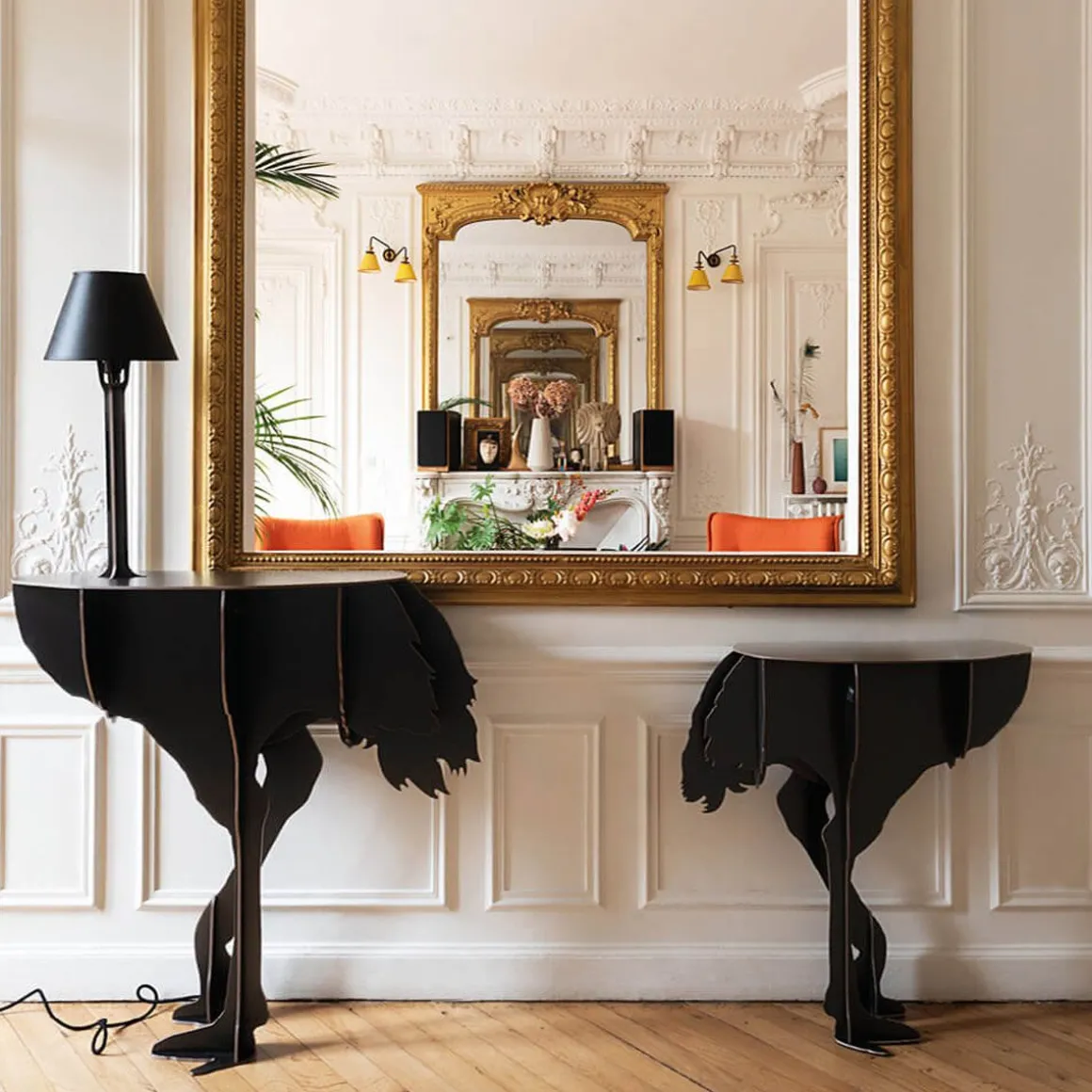 La console Diva Lucia de Ibride fait partie d’une famille de meubles sculptures aux allures zoomorphes est à apprivoiser : consoles autruches et tabourets chiens côtoient d’imposantes bibliothèques ours polaires dans les intérieurs comme dans les jardins.
