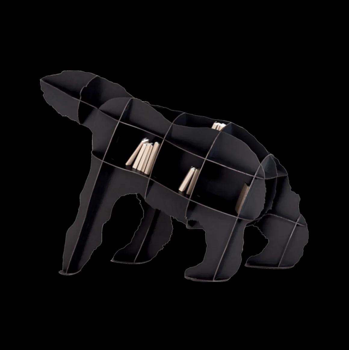 La bibliothèque Joe d’Ibride fait partie d’une famille de meubles aux allures zoomorphes. N’hésitez pas à les apprivoisier pour un intérieur original et animal. Consoles autruches et tabourets chiens, côtoient d’imposantes bibliothèques ours polaires dans les intérieurs comme dans les jardins.