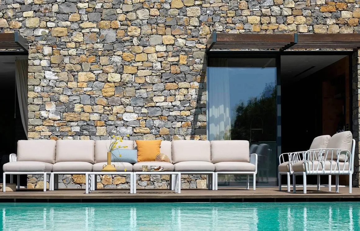 Coussins : rose, gris, bleu (adriatic), gris bleu (ghiaccio), avocat, vert (giungla), beige (canvas) ou beige chaud (tech panama)