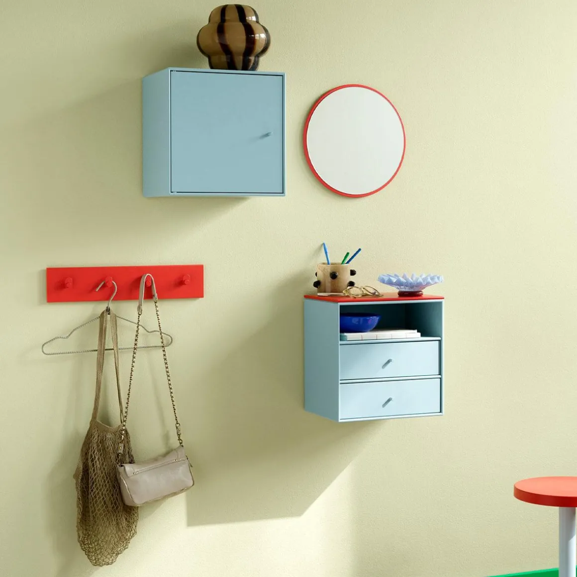 Montana Mini est une série de modules de rangement simples et polyvalents. La série est disponible dans de nombreuses variantes avec étagères, tiroirs et accessoires : miroirs, plateaux, tableau d’affichage et socle – le tout dans 10 couleurs assorties. Le Montana Mini ne mesure que 8 mm d’épaisseur et paraît plus fin que le système Montana original de 12 mm. La série est certifiée Ecolabel européen. Montana Mini est disponible en 10 coloris sélectionnés et peut supporter une charge maximale de 10 kg. Les modules sont disponibles avec des étagères et des tiroirs, ouverts ou fermés, et mesurent 35 x 35 x 25 centimètres. Les étagères sont livrées avec suspension. Des panneaux supérieurs pour une ou deux étagères sont disponibles contre supplément, ainsi qu’un socle pour un module. Les variantes peuvent être utilisées comme modules autonomes ou combinées exactement selon vos besoins et votre style personnel. Complétez votre look Montana Mini avec des accessoires tels que des miroirs ou un tableau d’affichage de la série. Pour plus d’informations sur les produits Montana Mini ou si vous avez besoin de conseils sur les différentes possibilités, vous pouvez trouver de l’aide auprès de votre revendeur Montana le plus proche.