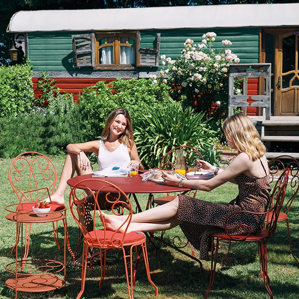 Montmartre chaise de Fermob. Une structure en fil acier tout en légèreté.. des volutes pleines de fraîcheur.. une largeur d’assise confortable… une empilabilité parfaite.. la chaise Montmartre allie à un produit de tradition le confort d’usage d’aujourd’hui.