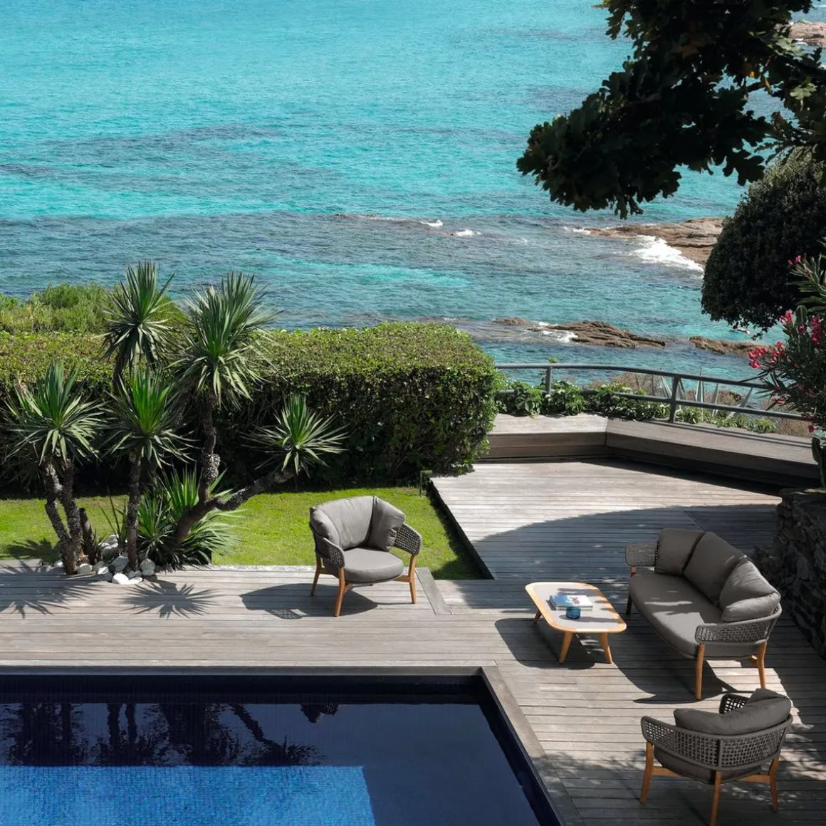 C’est en observant la lune que son designer a eu l’idée du canapé 2 places d’extérieur Moon. Son dossier rappelle en effet la forme d’une demi-lune. Légèreté dans le tressage des cordes et résistance due à l’utilisation du teck: telles sont les caractéristiques de ce canapé dessiné par Cristian Visentin. La coussinerie est en tissu déhoussable, facile à laver et résistant aux agents atmosphériques. Le rembourrage est en mousse quick dry foam.