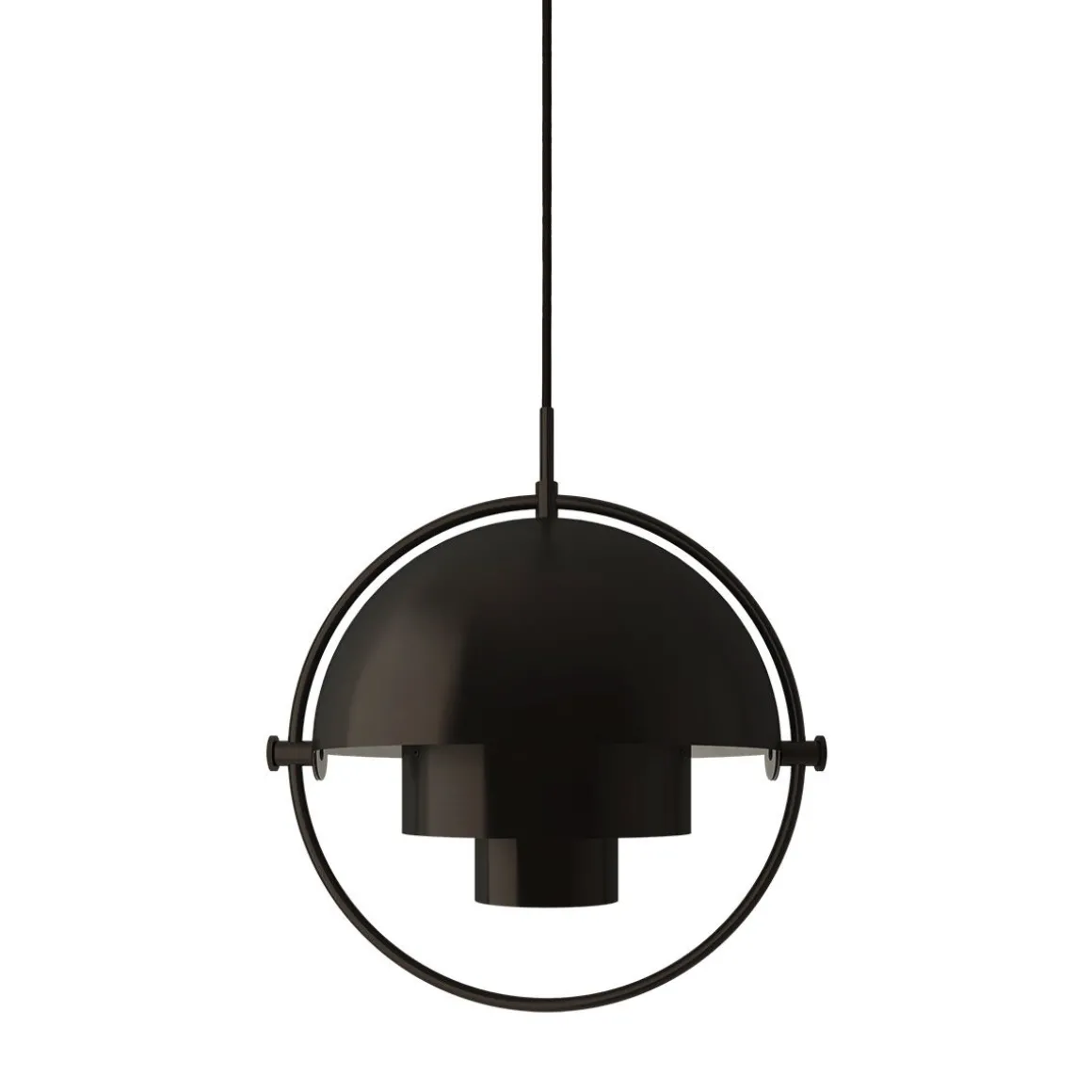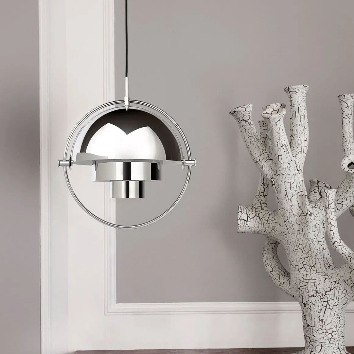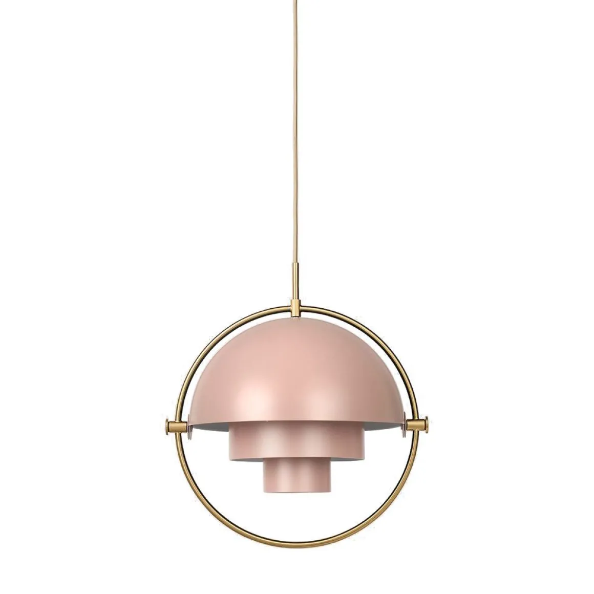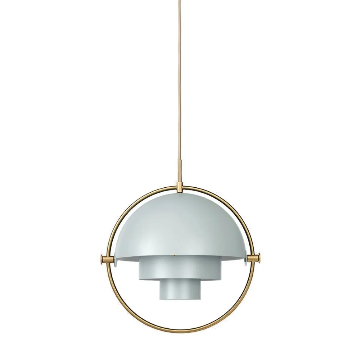Le Multi-Lite a d’abord été dessiné en 1972 lorsque Louis Weisdorf a fait une exception à sa propre conception de l’utilisation de multiples éléments répétitifs. Il reflète plutôt sa passion pour la diversité. Deux formes cylindriques posent la base de la lampe et une bague métallique l’entoure et ancre les deux abat-jours quart-sphériques, qui finalement complètent une image d’un design iconique avec de multiples fins. La lampe suspendue Multi-Lite a une expression intemporelle qui s’adapte dans n’importe quel cadre domestique.