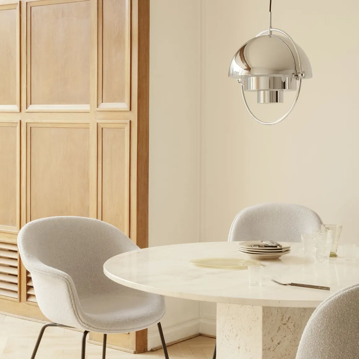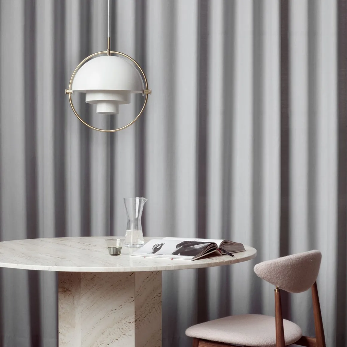 Multi-Lite Suspension de Gubi par Louis Weisdorf. La collection Multi-Lite embrasse l’âge d’or du design danois avec ses formes caractéristiques des deux façades opposées, des nuances mobiles qui permettent de créer une installation personnelle et une large gamme de niveaux d’éclairage dans une pièce. En tournant individuellement les abat-jours, la suspension Multi-Lite peut être transformée en plusieurs combinaisons où la lumière peut être dirigée vers le haut, vers le bas ou exsudent une lumière d’art asymétrique.