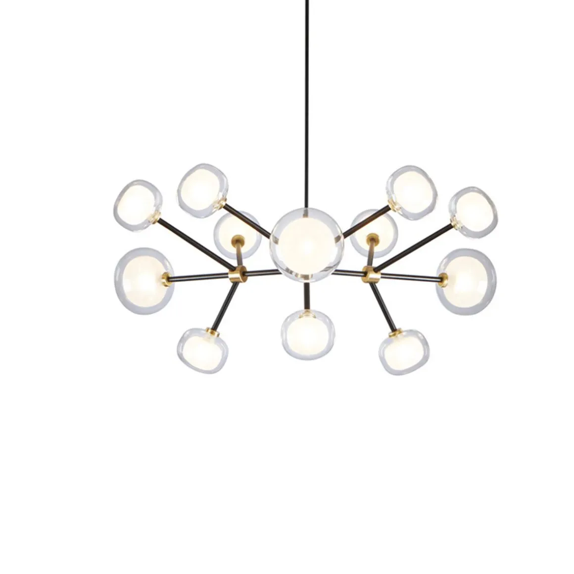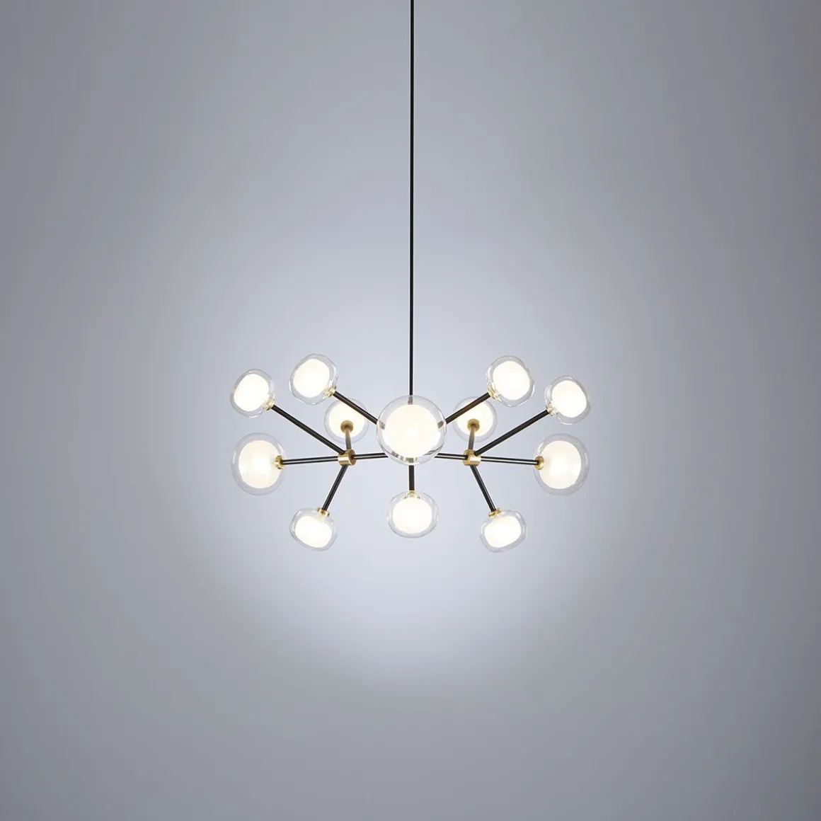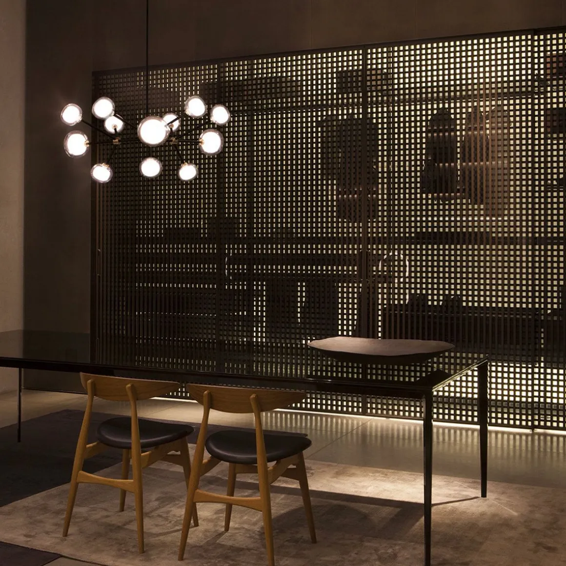 Collection Nabila de Tooy inspirée de lampes des années 50, élégantes et sophistiquées, représentant le détail pour enrichir n’importe quel endroit. Un objet lumineux sphérique double face en verre borosilicaté rend ces lampes existantes dans différentes compositions, avec une structure faite de métal laqué enrichie de détails en laiton brossé. Différents modèles sont disponibles pour toutes les situations. Richesse et sobriété en un seul élément.