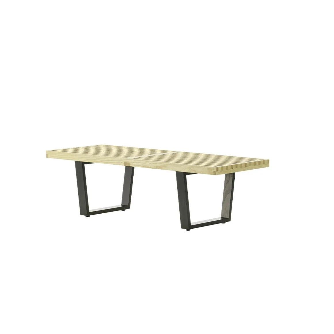 Le Nelson Bench est réalisé en bois de frêne, associant la couleur noire de l’assise à la finition noire du piètement. Avec son langage formel aux lignes claires et droites, il reflète la formation d’architecte de George Nelson. Il peut servir de banc mais aussi de table d’appoint et est disponible en deux longueurs.