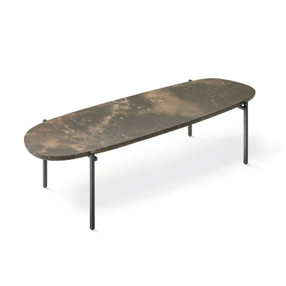 Petite table avec structure en acier verni noir et plateau en marbre noir Marquinia ou en marbre Emperador, et aussi disponible en marbre blanc de carrare d’épaisseur 30 mm, avec vernis de protection anti taches et polyester transparent mat.