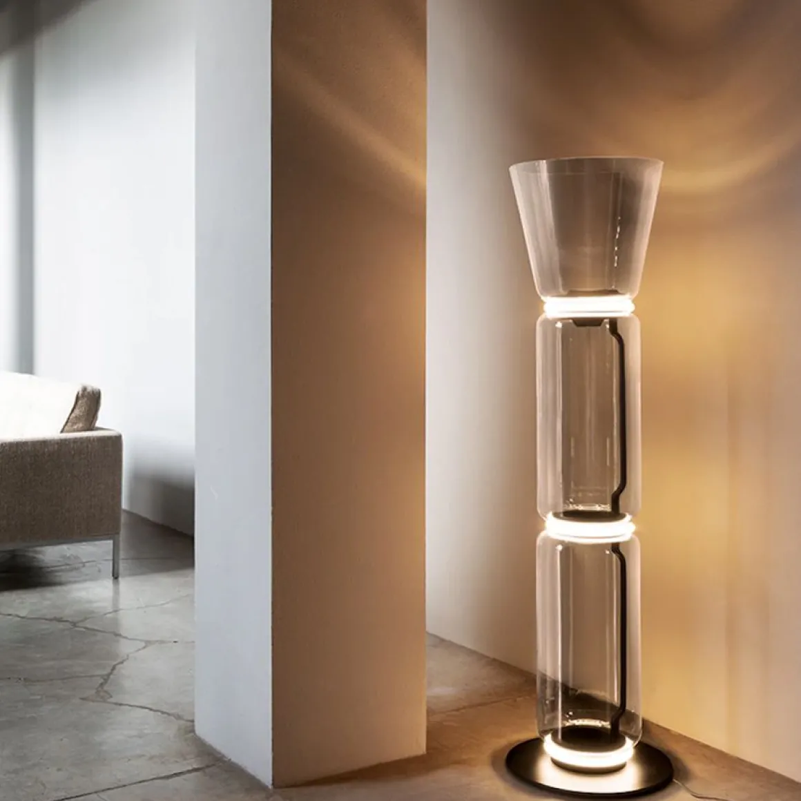 Noctambule : l’oiseau de nuit ou le fêtard. La plupart du temps invisible pendant le journée, mais se terminant par une activité glamour la nuit. L’analogie est approprié. La nouvelle collection de lampes et composée de modules en verre soufflé, transparents et donc quasi inexistants le jour. Mais, lorsque vous les allumez dans le noir, il se transforment en magnifiques lampes lumineuses. Les modules de verre cylindriques définissent la grammaire de base de la collection. L’unique module est une lanterne. Plusieurs modules empilés les uns sur les autres créent une colonne lumineuse ou un lustre suspendu dans un puits d’escalier. Des éléments supplémentaires, tels qu’un dôme en verre ou une tête en forme de cône, permettent une performance accrue, comme un éclairage au sol et une suspensions. La technologie LED soigneusement calibrée qui alimente les lampes est intégrée discrètement dans les jonctions entre les modules de verre. Presque absent, mais prêt à être activé à tout moment.