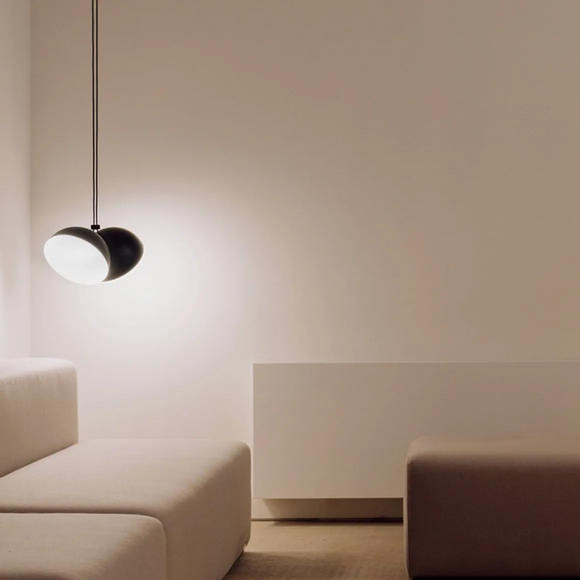 Le jeu intéressant entre l’inclinaison et le mouvement fait de Nod une lampe idéale pour les espaces contract en raison de sa polyvalence. Le poids et le volume de chacune des suspensions produisent un grand impact sur l’espace et lui procurent de la puissance. Son articulation intelligente permet d’incliner les suspensions et d’éclairer les espaces de manière directe ou indirecte. Il existe trois modèles de Nod avec une, deux ou trois suspensions, qui peuvent être complémentaires dans le même espace afin de générer dynamisme et rythme.