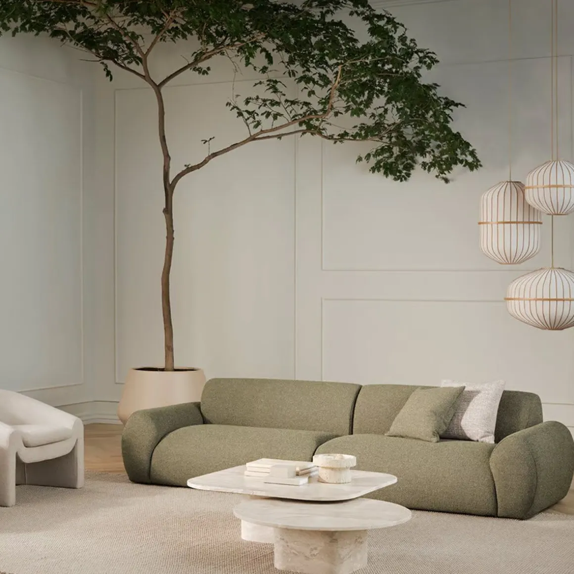 Nuvol de Bolia par Ramón Esteve. Avec ses formes organiques et fluides et sa construction modulaire polyvalente, le canapé modulable Núvol invite l’artisanat sans effort à s’inviter chez vous. Nommé d’après le mot catalan signifiant « nuage », ce canapé vous enveloppe d’une douceur luxueuse, comme un nuage, une sensation qui vous plongera dans un havre de paix.