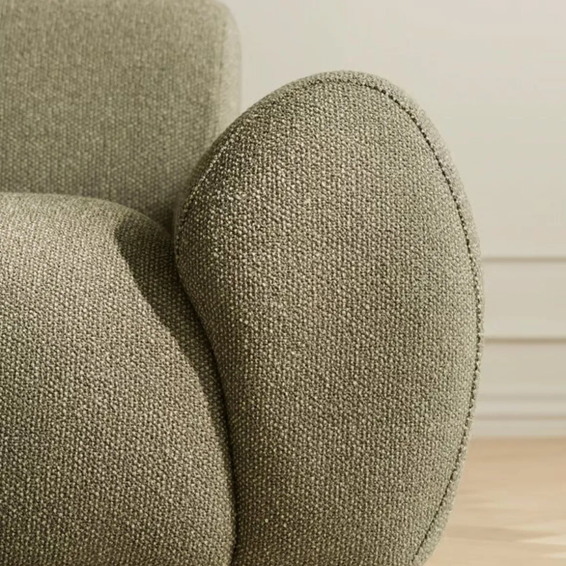 Matériaux : Chêne huilé massif certifié FSC™, tissu Monza bouclé & texture (28 % polyacrylique, 24 % coton, 20 % viscose, 16 % laine, 12 % polyester)