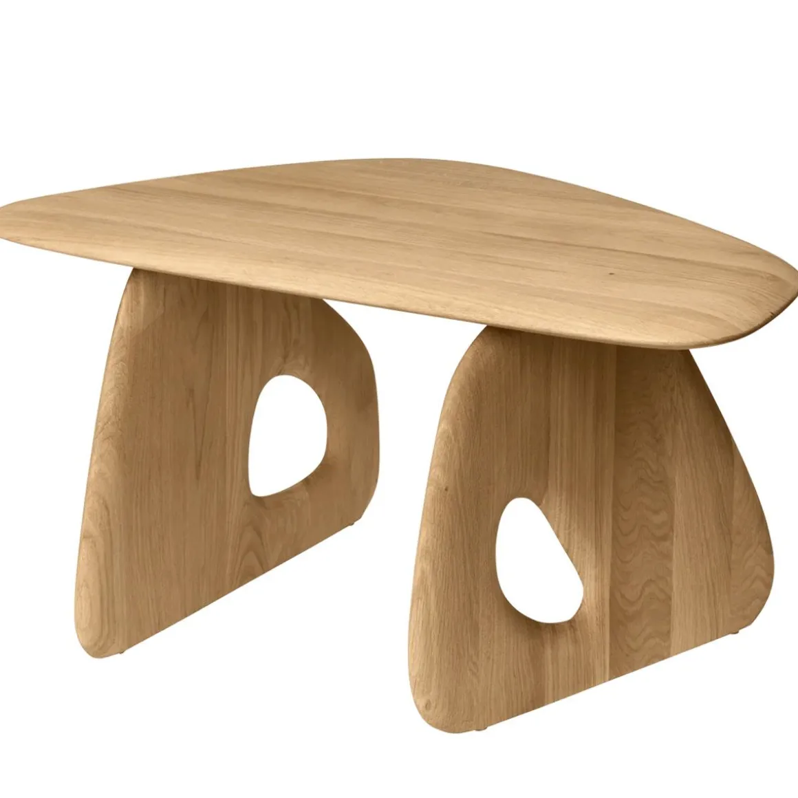 Oar de Ferm Living. La Table basse Oar allie élégance et design réfléchi, avec des courbes douces et fluides et des pieds aux détails de découpe uniques. Fabriquée en chêne massif certifié FSC® avec une finition huilée naturelle, ses pieds en laiton renforcent son côté sophistiqué tout en assurant sa stabilité sur différentes surfaces. Conçue dans un souci de polyvalence, la table se décline en deux formes qui s’emboîtent parfaitement, offrant une grande flexibilité pour une utilisation individuelle ou en tant que surface combinée. La table est emballée à plat pour un assemblage facile, ce qui en fait un ajout pratique et raffiné à tout espace de vie.