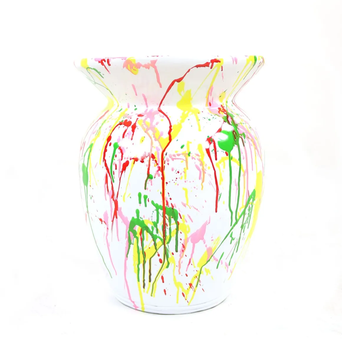 Reprenant les lignes des vases d’anduze mélangées à de vives et intenses couleurs.