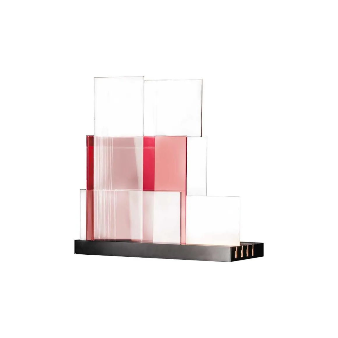 La base de la lampe de table LED, présente 4 rails ou positionner au choix les différents diffuseurs pour créer d’infinies configurations de luminière et de transparence.