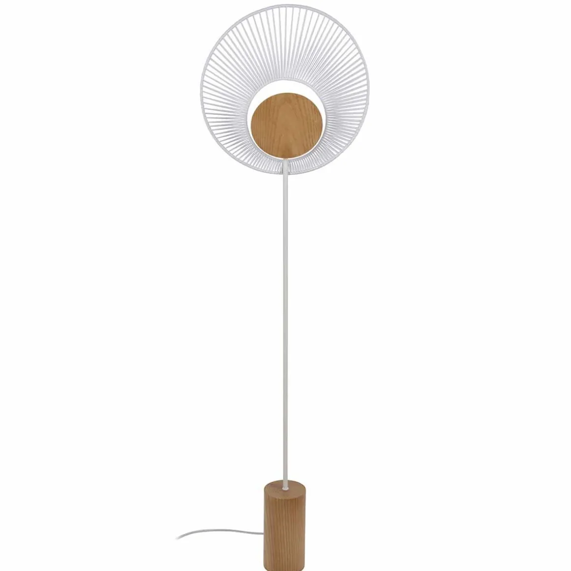 Mat. base béton et métal ou bois et métal, abat-jour rond en coton et métal