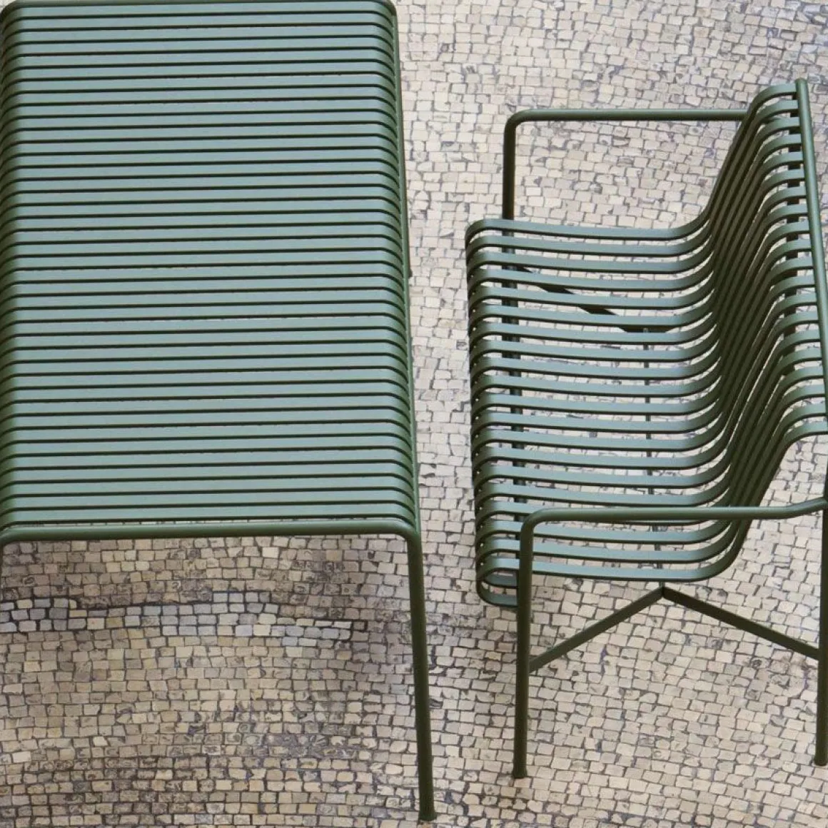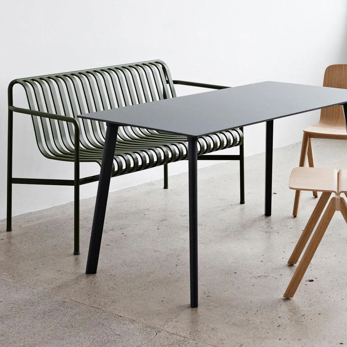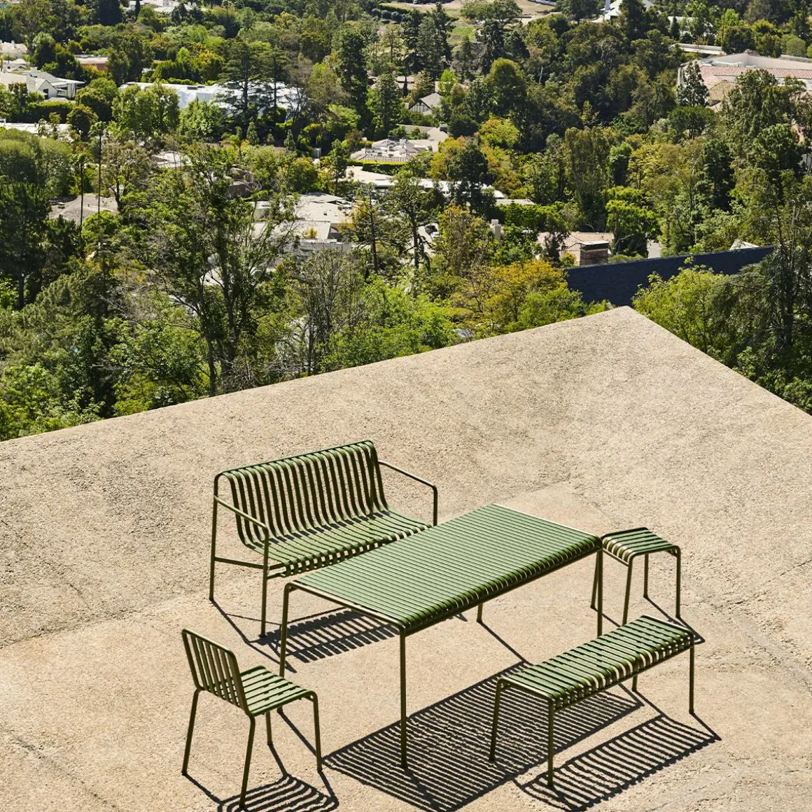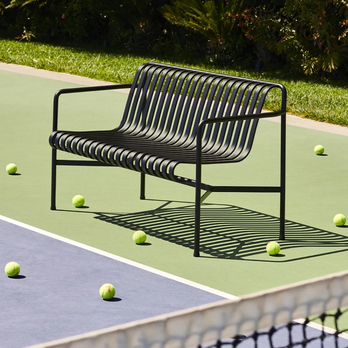 Palissade Canapé Extérieur de Hay. Le banc de jardin Palissade est le mélange parfait entre design et modernité. Palissade est une collection de meubles d’extérieur conçu par Ronan et Erwan Bouroullec pour HAY. La collection a été conçue pour s’adapter à une grande variété d’environnements: cafés, restaurants, jardins, terrasses et balcons. La construction permet une large gamme de typologies avec un langage formel commun. Des tabourets et des bancs à des chaises et des tables, des chaises longues et des canapés, la collection comprend 13 éléments différents, unis non seulement par leur image graphique, mais aussi par leurs caractéristiques communes: ils sont forts sans encombre, élégant sans être fragiles.