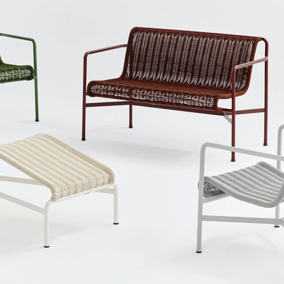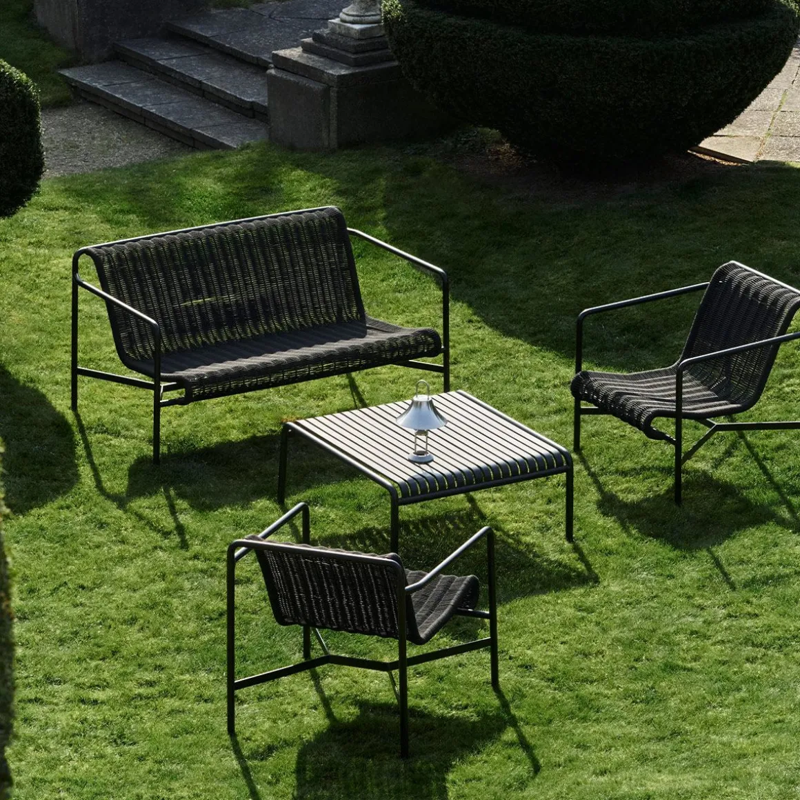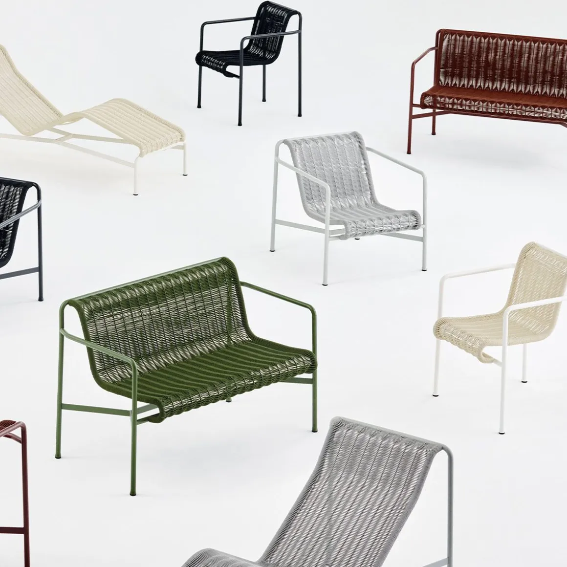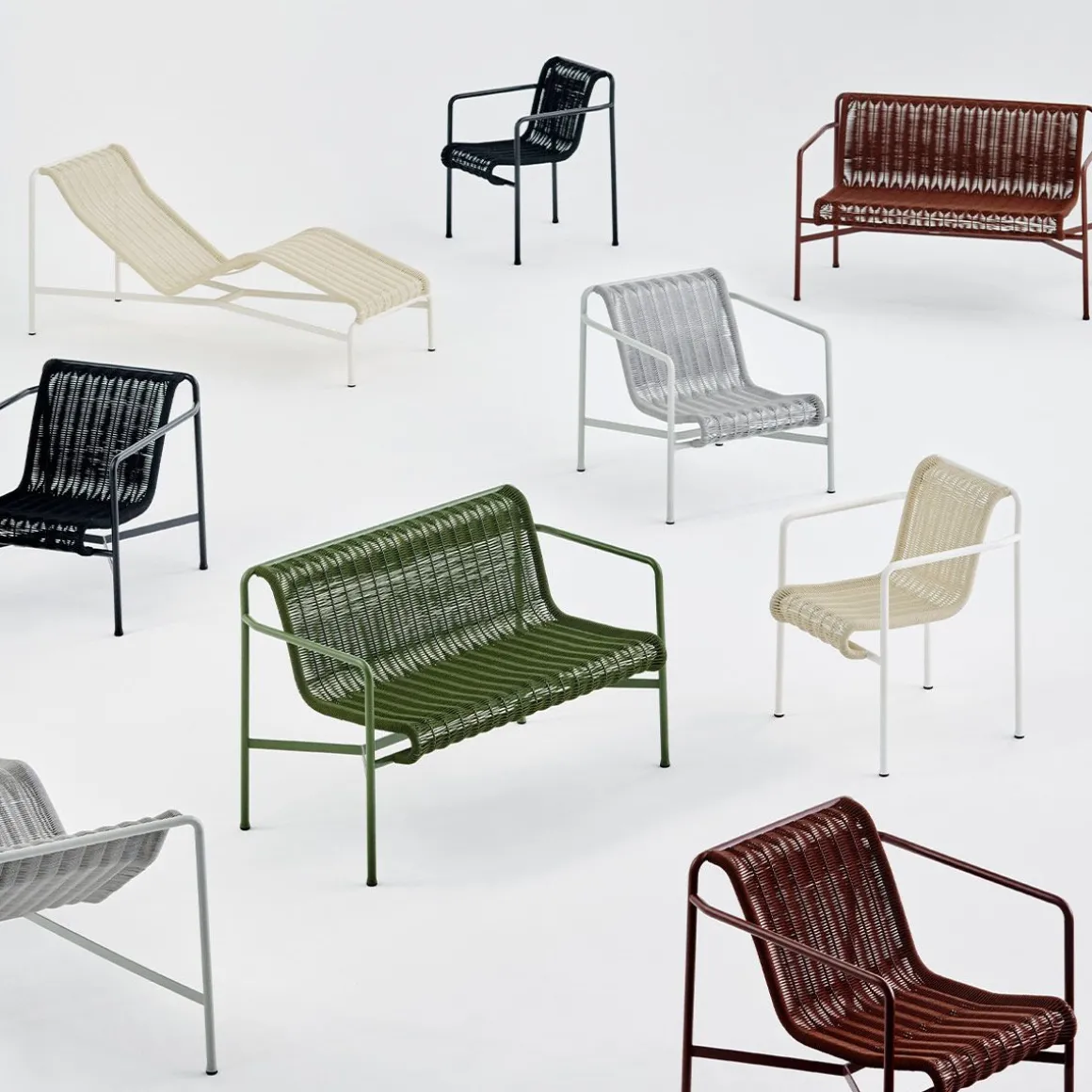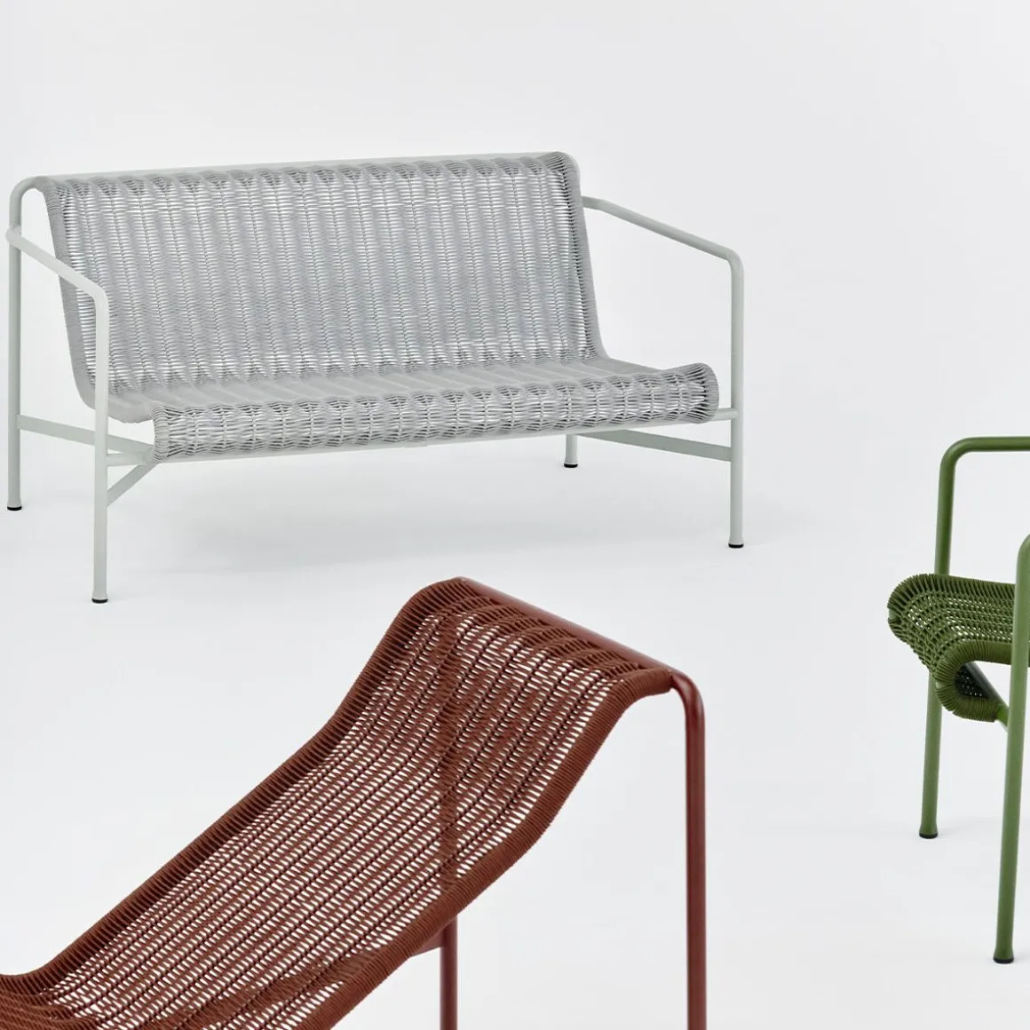 Unie par son principe commun de géométrie symétrique, la collection de mobilier d’extérieur Palissade est conçue pour s’intégrer sans effort dans les environnements naturels et urbains. Le canapé Palissade Cord Lounge partage le même langage de conception que la collection originale, combinant une expression plus douce avec la simplicité visuelle et la force fondamentale de Palissade. Le cordon en polyester recyclé est tissé à la main sur le cadre en acier enduit de poudre du canapé dans une couleur ton sur ton assortie, créant ainsi un siège confortable et durable. La palette de couleurs polyvalente du canapé et son attrait intemporel le rendent idéal pour une utilisation dans une large gamme d’espaces extérieurs, des cafés et des parcs aux jardins, terrasses et balcons.