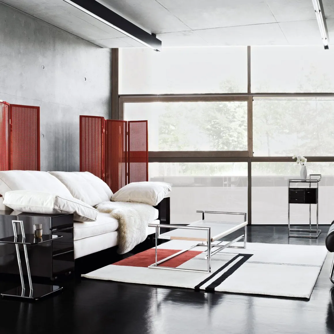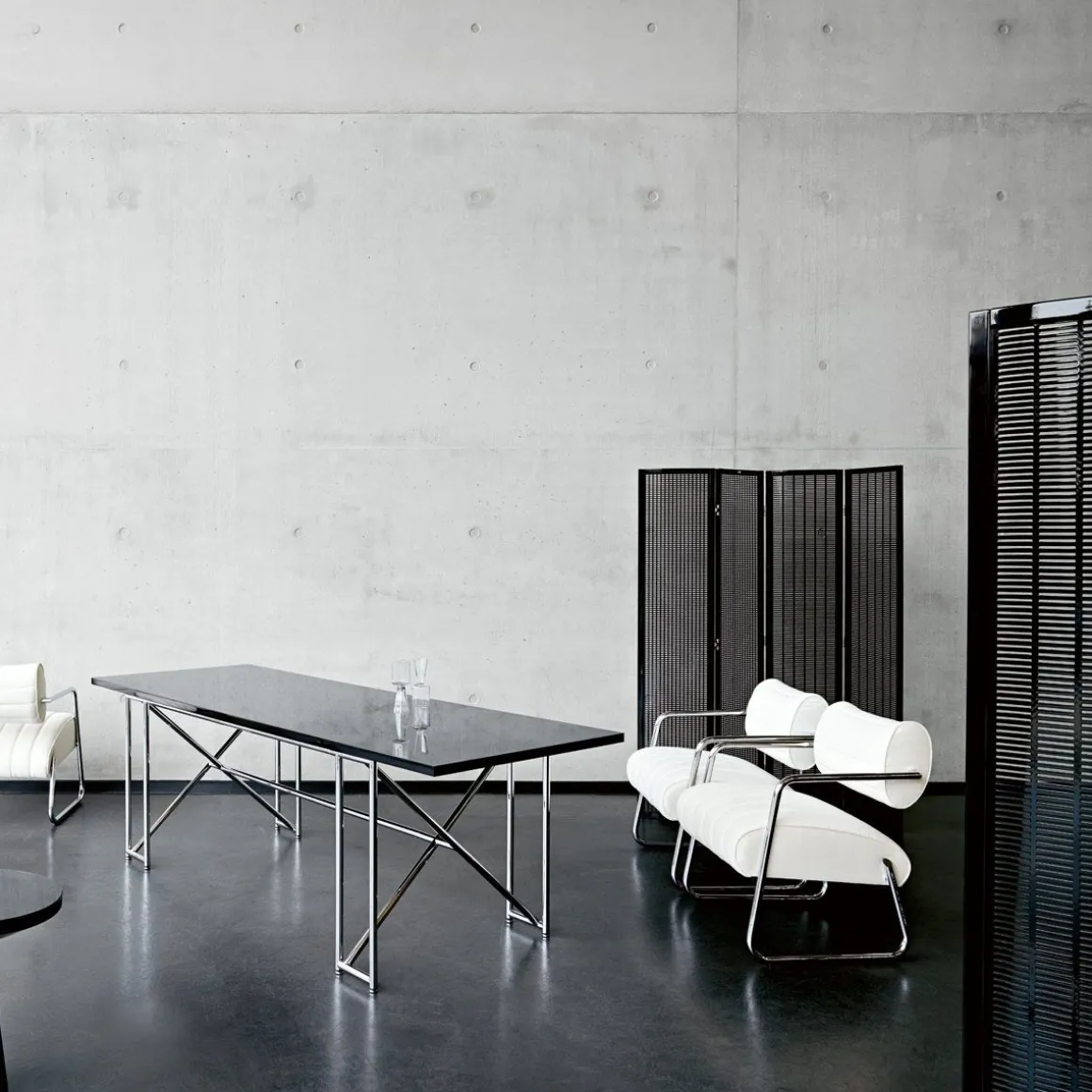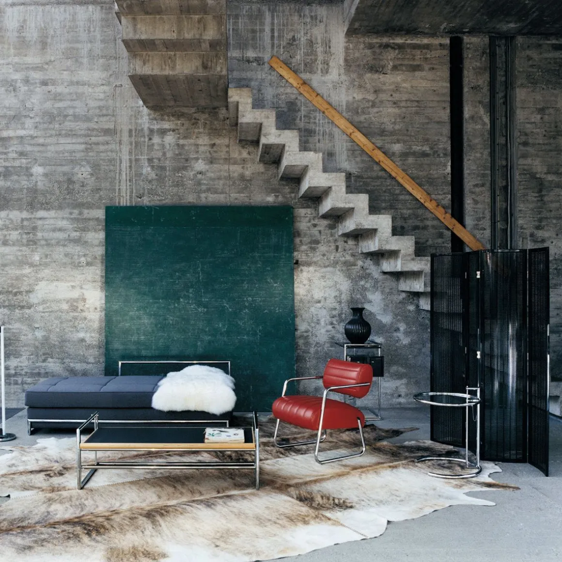 Le look high-tech qui a émergé dans les années 80 et qui est toujours d’actualité latente avait un précurseur ingénieux : il y a plus d’un demi-siècle, Eileen Gray a anticipé l’esthétique industrielle cool de la technologie moderne avec le paravent et sa lampe fluorescente Tube Light.