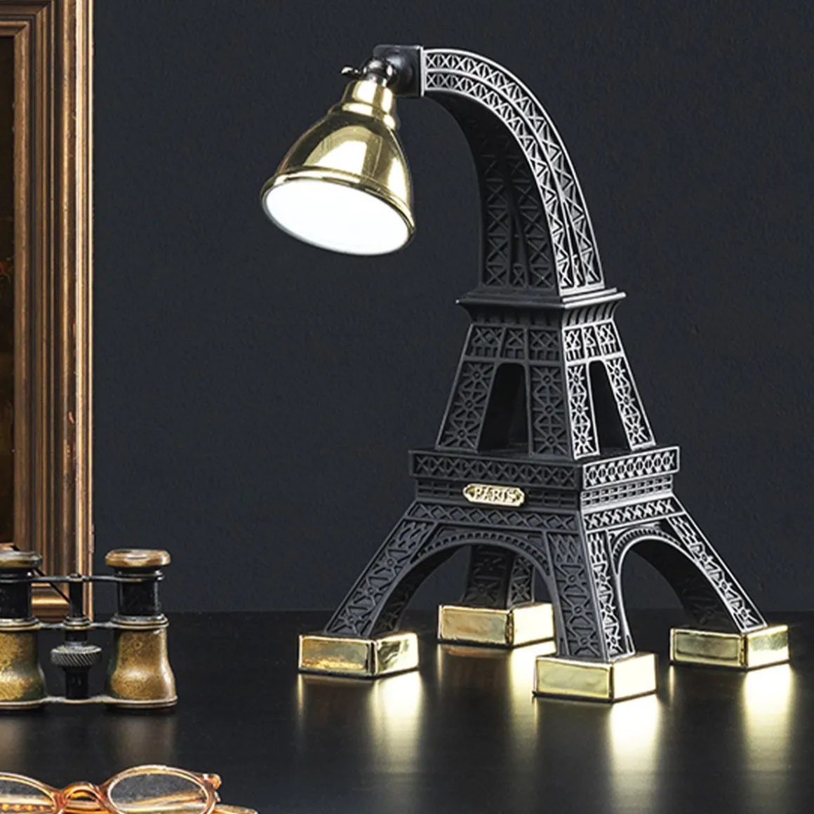Paris de Qeeboo par Studio Job. Une lampe représentant la Tour Eiffel miniature qui s’adapte parfaitement à chaque chevet et table de lecture. Idéal pour ajouter une touche de glamour à n’importe quelle maison. Le diffuseur en laiton en forme de dôme, placé sur le corps, est entièrement réglable pour se concentrer sur chaque surface de lecture.
