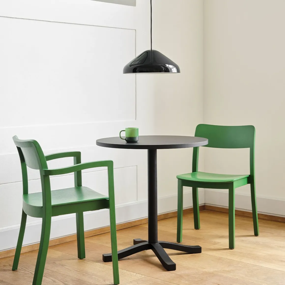 Conçue pour HAY par le designer français Julien Renault, Pastis Table est une table en bois construite sur l’authenticité, la solidité et un savoir-faire de haute qualité avec l’intention de créer une table intemporelle qui durerait des décennies. Dotée d’un plateau rond et de quatre pieds incurvés, la table équilibre une construction robuste avec une esthétique élégante, offrant une table polyvalente qui dégage de la personnalité – pour profiter de la vie, manger, socialiser et apporter une sensation de chaleur et de vitalité à son environnement. Disponible dans une variété de types de bois et de couleurs avec un plateau en placage, la taille compacte et la durabilité de Pastis le rendent adapté à de nombreux espaces intérieurs, des maisons privées aux cafés et autres environnements publics.