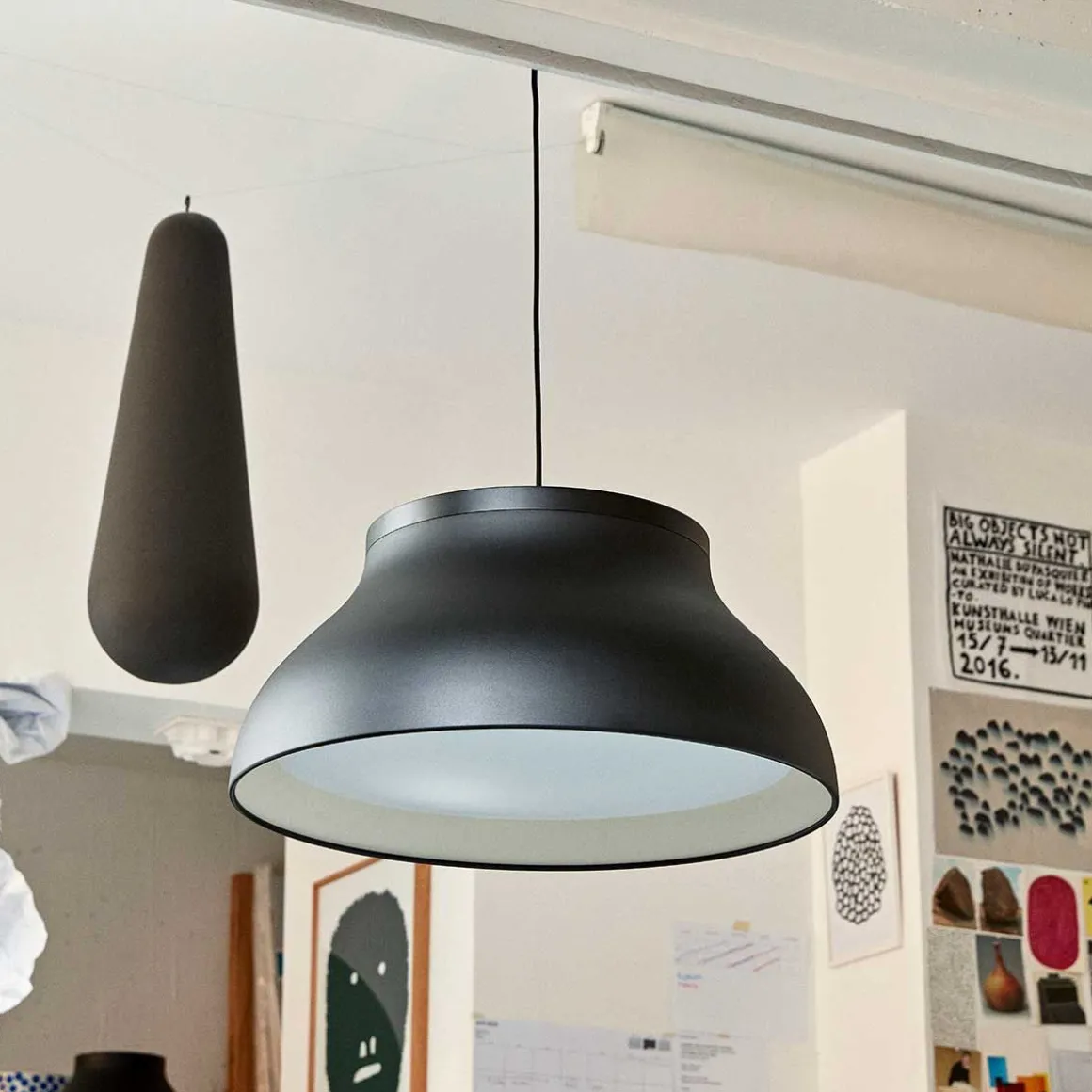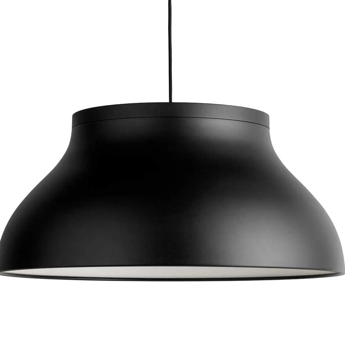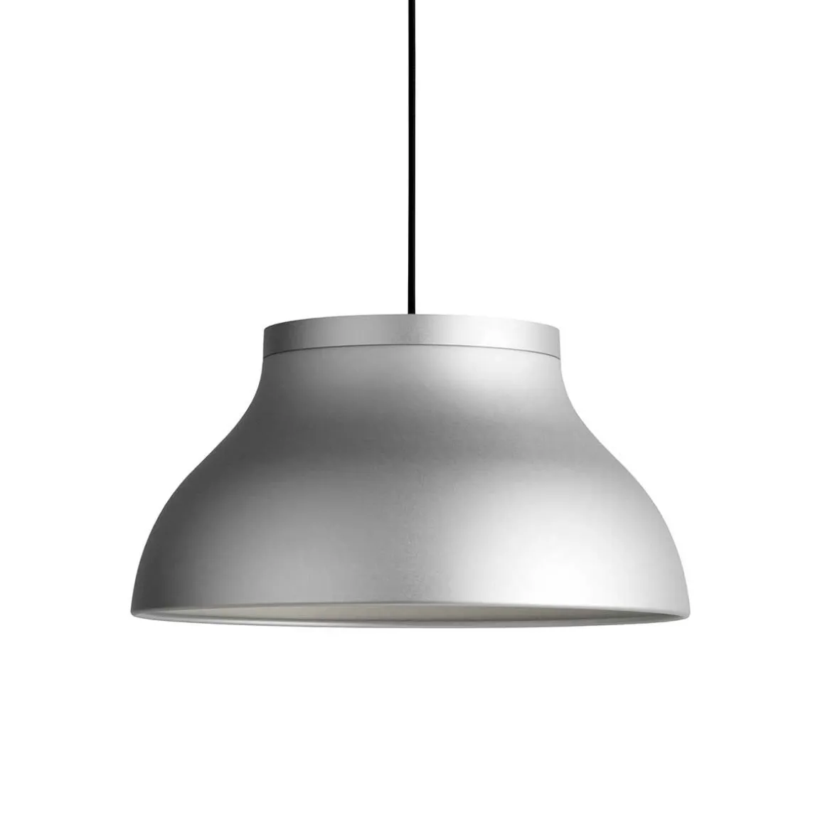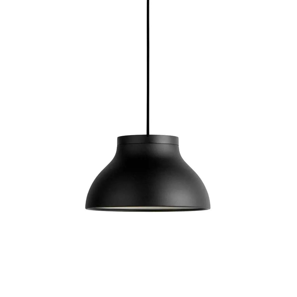 PC suspension de Hay. Les suspensions PC de Pierre Charpin sont une collection de luminaires suspendus raffinés qui peuvent être utilisés indépendamment ou en groupe. Les suspensions sont fabriquées en aluminium anodisé, ce qui rend la surface plus résistante à la corrosion. La source lumineuse de chaque suspension est cachée par un diffuseur moulé en polycarbonate amovible, créant à la fois une sortie de lumière directionnelle douce et déterminant la forme de la lampe elle-même. Les suspensions PC sont disponibles dans une variété de tailles et de couleurs et conviennent aussi bien aux marchés contractuels qu’aux marchés domestiques.