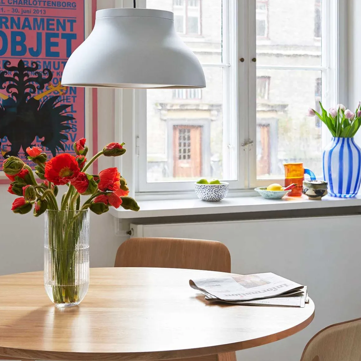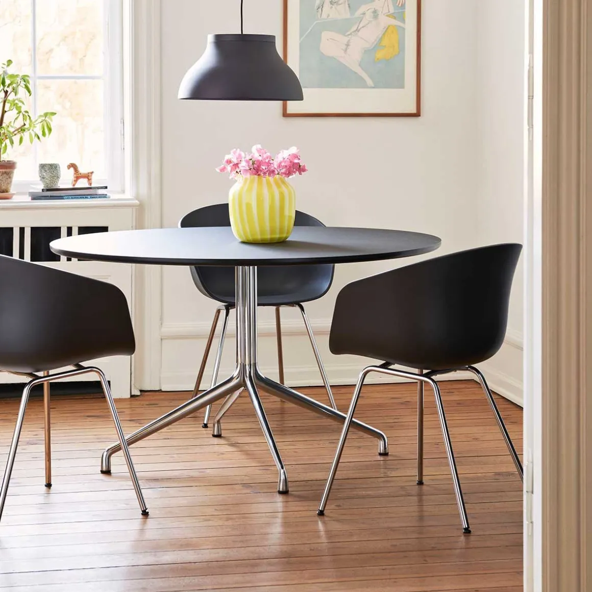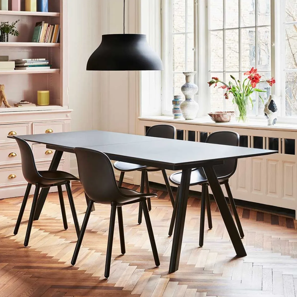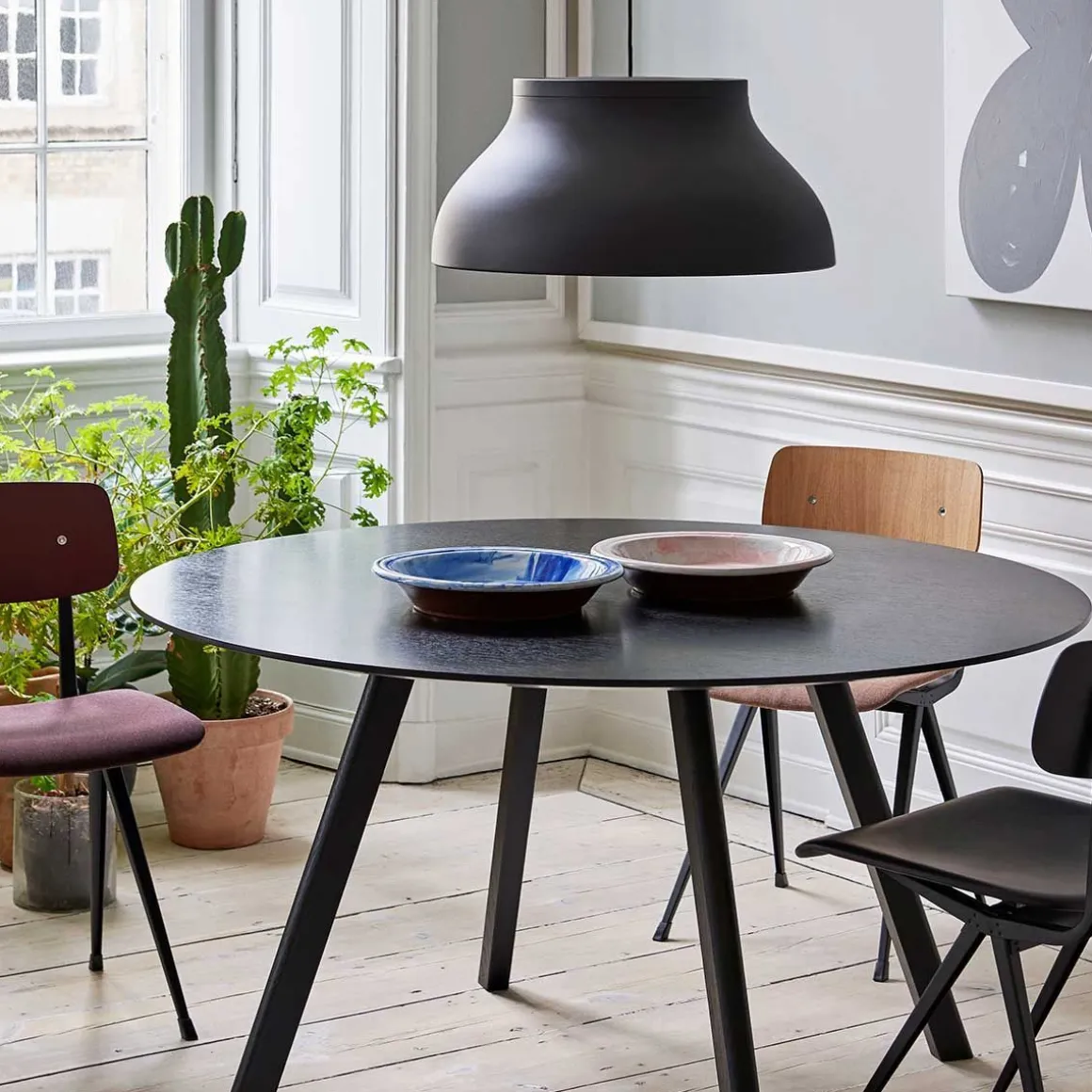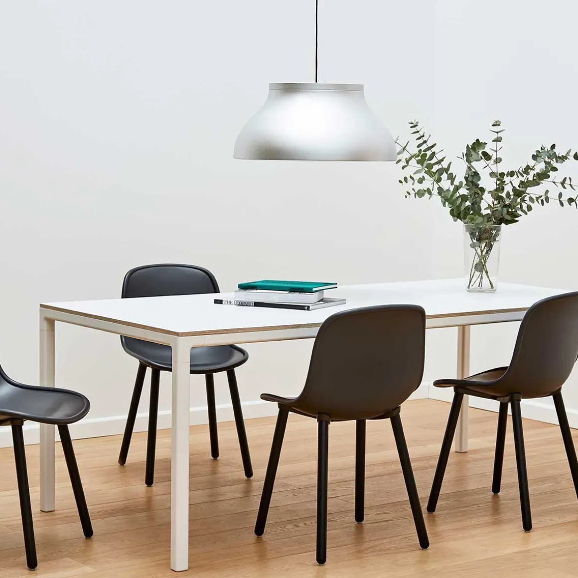 PC suspension de Hay. Les suspensions PC de Pierre Charpin sont une collection de luminaires suspendus raffinés qui peuvent être utilisés indépendamment ou en groupe. Les suspensions sont fabriquées en aluminium anodisé, ce qui rend la surface plus résistante à la corrosion. La source lumineuse de chaque suspension est cachée par un diffuseur moulé en polycarbonate amovible, créant à la fois une sortie de lumière directionnelle douce et déterminant la forme de la lampe elle-même. Les suspensions PC sont disponibles dans une variété de tailles et de couleurs et conviennent aussi bien aux marchés contractuels qu’aux marchés domestiques.