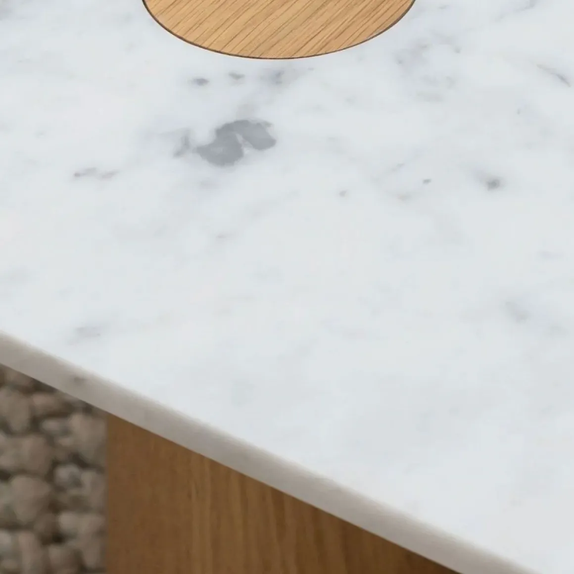 Matériaux : chêne ou noyer, marbre blanc carrare