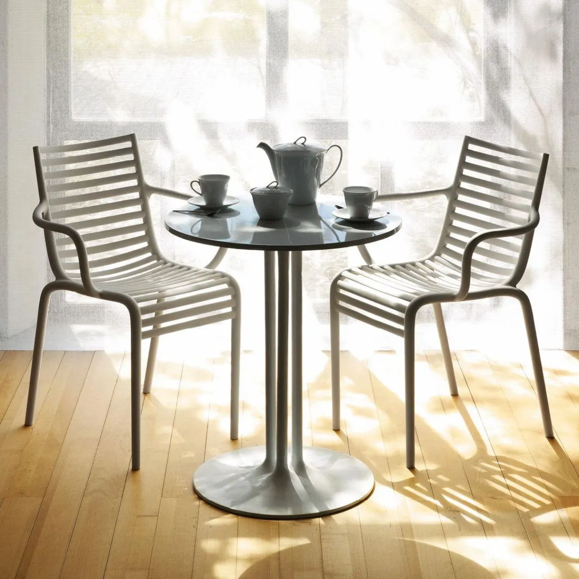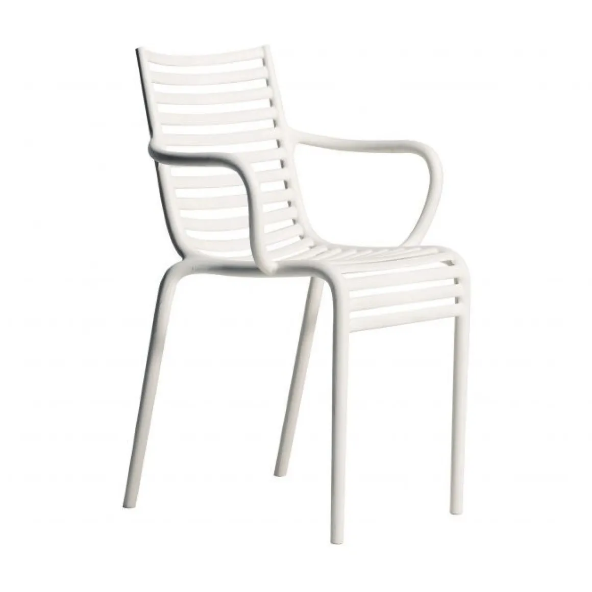 Design simple et raffiné, ce fauteuil ira aussi bien à l’intérieur qu’à l’extérieur. Ce monobloc de polypropylène apporte un côté « jardin urbain ».