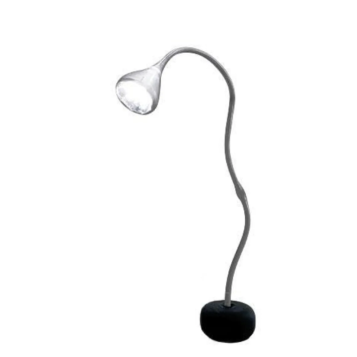 Matériaux : base en acier verni peint effet soft touch, tige revêtu d’une gaine en silicone naturelle et transparente (anti jaunissement), diffuseur en polycarbonate verni transparent et réflecteur interne en aluminium spéculaire