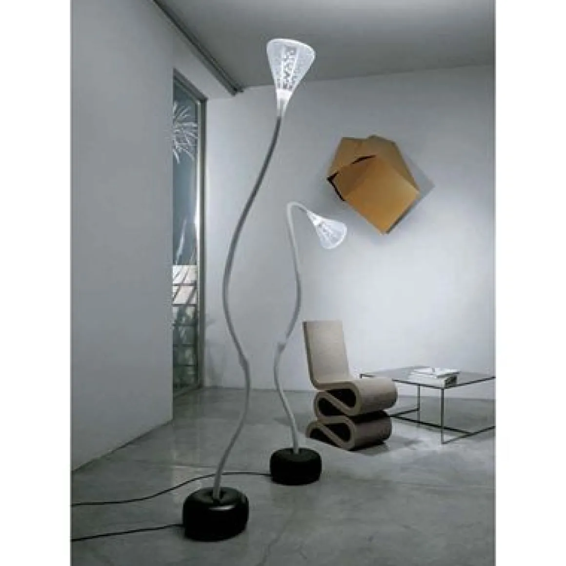 Le lampadaire Pipe Artemide est constitué d’un tube en acier, rigide dans sa partie inférieure et flexible dans sa partie supérieure. La tige est revêtue d’une gaine en silicone naturelle transparente (anti jaunissement) et terminée par un diffuseur de forme conique. Le diffuseur est en polycarbonate verni transparent. Le reflecteur interne est en aluminium spéculaire comprenant de petites perforations. La base est acier verni peint en noir effet « soft touch ». Emission directe orientable et diffuse.
