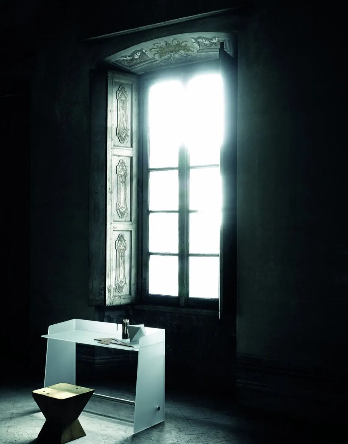 Le grand soin des détails et les proportions calibrées confèrent à ce bureau un aspect de délicate harmonie.
