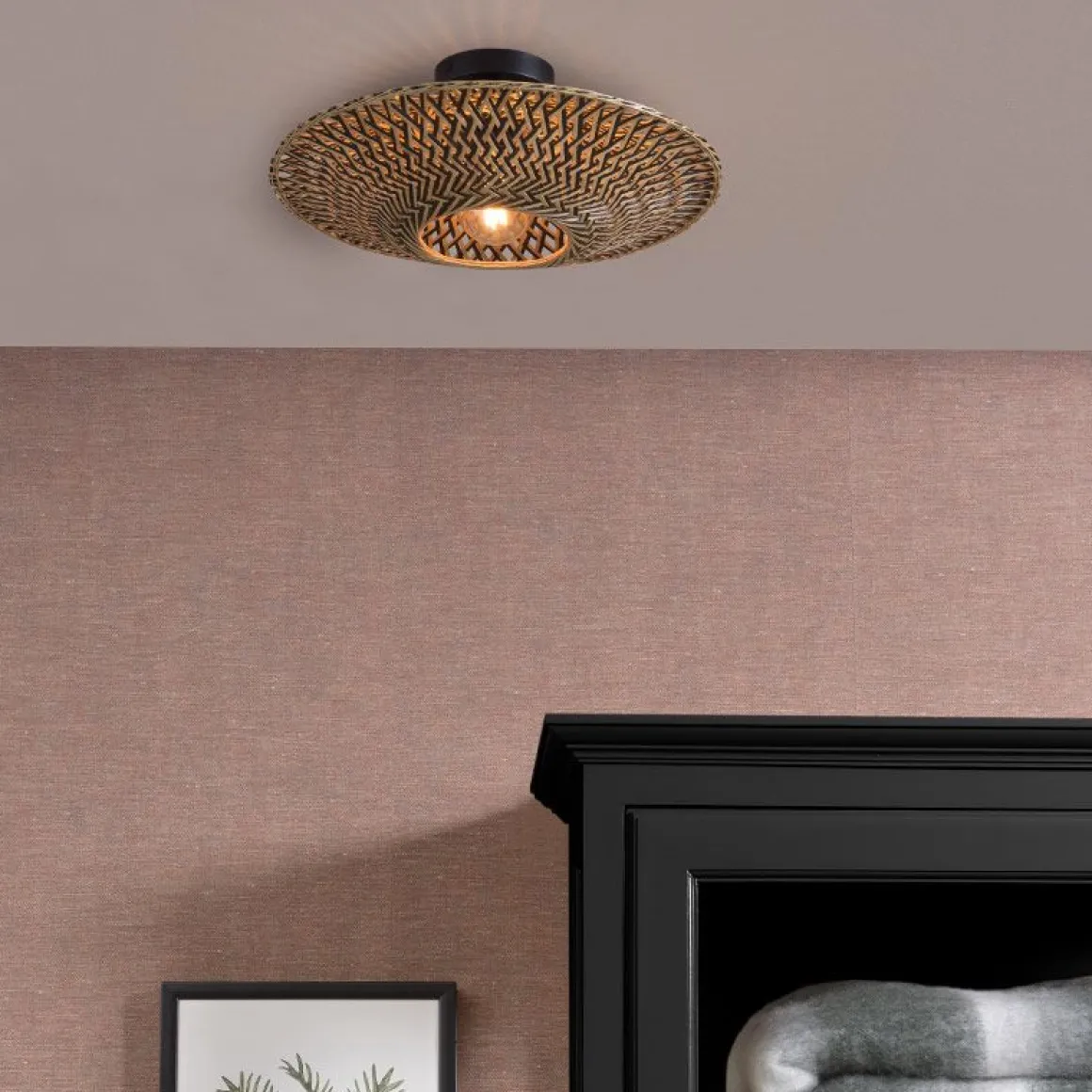 Plafonniers en bambou Bali tissés à la main en dises plats en trois tailles.