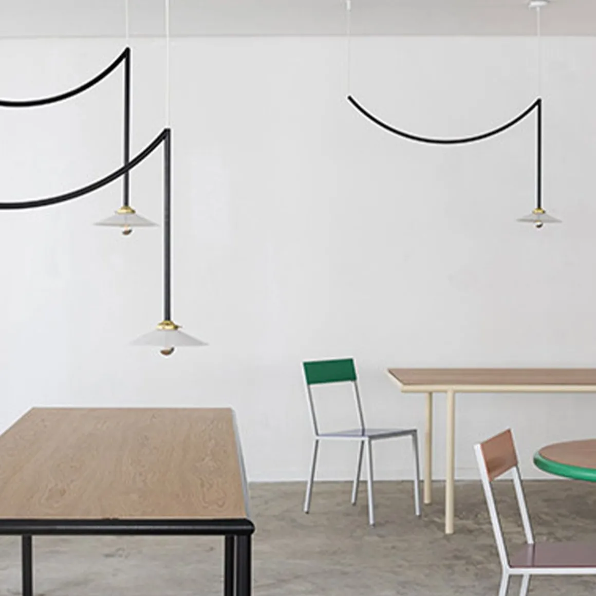 Avec Valerie_objects célébrant leur cinquième anniversaire, le duo de designers muller van severen a créé deux objets d’éclairage spéciaux qui créent l’ambiance festive. les plafonniers n°4 et n°5 reflètent la forme de guirlandes et de serpentines, dessinant des lignes ludiques et colorées dans l’espace.