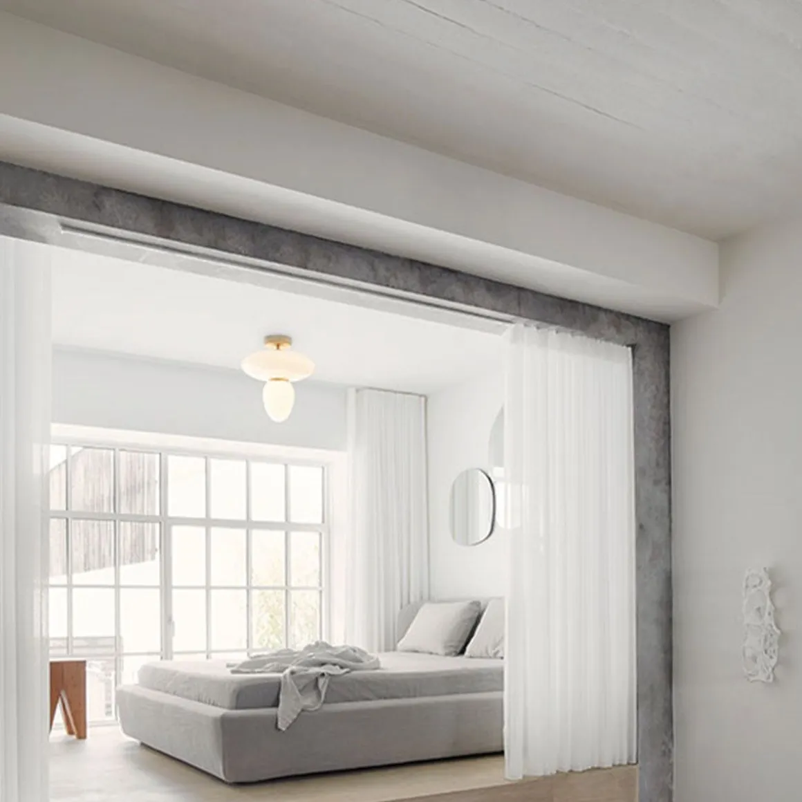 Rizzatto 42, donne une lumière douce et uniforme, ce qui le rend idéal dans la chambre, la cuisine ou le couloir. La lampe est montée directement au plafond, ce qui permet de créer un éclairage de plafond unique et décoratif.