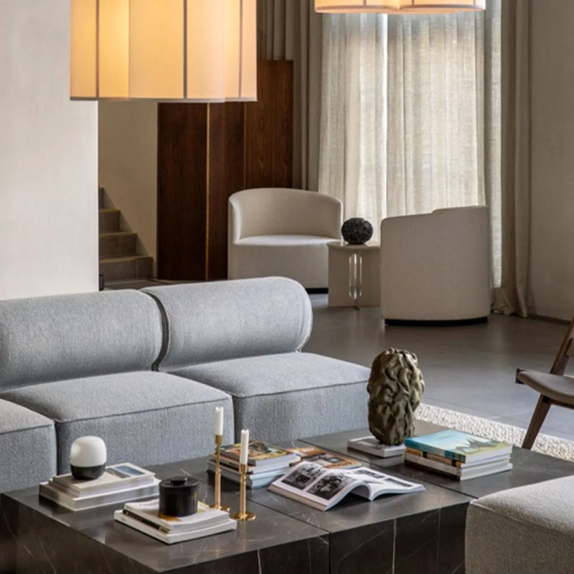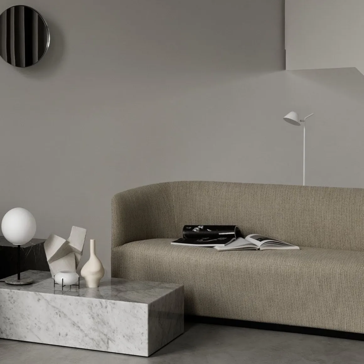 Aussi polyvalent qu’intemporel, le socle en marbre sert à la fois à être une belle pièce sculpturale à part entière et à mettre en valeur tous les objets qui y reposent. Le marbre poli porte un air de sophistication et d’élégance pour élever n’importe quel espace. Conçu par Norm Architects en hommage à la beauté particulière du marbre, le socle est disponible en variétés cubiques, hautes et basses, ainsi que dans une petite gamme de couleurs, y compris le nouveau gris brun. La lourdeur du marbre du socle contraste avec la surface polie; la lumière rebondit sur les angles et tombe sur les sommets, produisant un effet de projecteur dans n’importe quel espace. Bien que les lignes des podiums soient nettes et épurées, le naturel du marbre est au premier plan de son identité visuelle, créant un contraste intrigant au sein de chaque pièce.