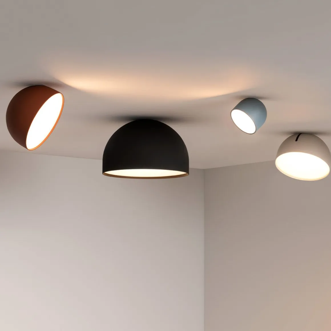 Plusminus Solo propose une gamme de plafonniers semi-circulaires. Combinant spots d’accentuation et diffuseurs plats orientables, la collection offre un éclairage général confortable ainsi qu’un éclairage plus concentré.