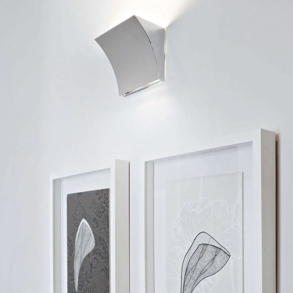 Applique Pochette Up/Down LED de Flos par Rodolpho Dordoni. Corps en alliage de zamac moulé sous pression, recouvert d’une peinture liquide dans les couleurs gris mat, bronze ou avec finitions chromées et galvanisées. Attache murale en acier moulé et zinguée en blanc, comprenant le système de fixationmurale et les dispositifs électriques. Deux sources lumineuses sont prévues, dont une émet une éclaire la partie inférieure de l’appareil. Peut être muni d’un variateur encastrable traditionnel.