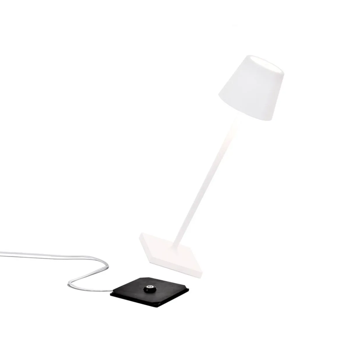 Poldina est une lampe de table portable et rechargeable avec batterie. Elle est équipée d’une base de charge par contact, d’un variateur tactile. La lampe est également équipée de la fonction de sélection de la température de couleur de la lumière entre 2700K et 3000K (blanc dynamique) et un haut degré de protection la rend adaptée à une utilisation intérieure et extérieure.