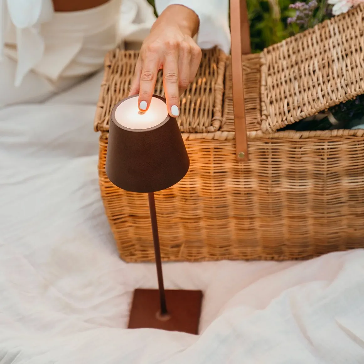 Poldina est une lampe de table portable et rechargeable avec batterie. Elle est équipée d’une base de charge par contact, d’un variateur tactile. La lampe est également équipée de la fonction de sélection de la température de couleur de la lumière entre 2700K et 3000K (blanc dynamique) et un haut degré de protection la rend adaptée à une utilisation intérieure et extérieure.
