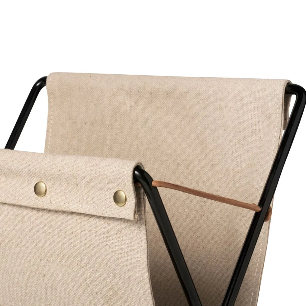 Le porte magazine Herman de Ferm Living, tire son inspiration de l’esthétique vintage. Il associe et mixe différents matériaux. Le support de la toile durable est fixé sur un cadre en métal enduit de poudre fixé avec des lacets en cuir. Des boutons-pression en laiton et une étiquette en cuir du logo terminent ce dessin rétro-inspiré. Ce porte-revues est pliants et se range facilement. Son design retro vous séduira !